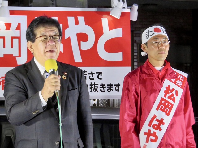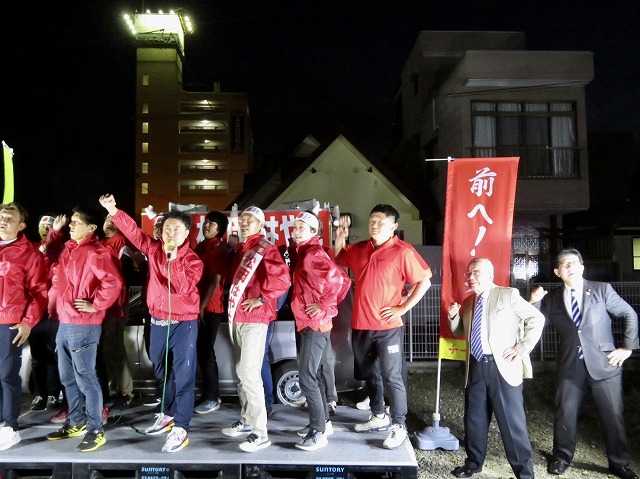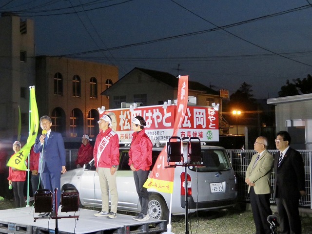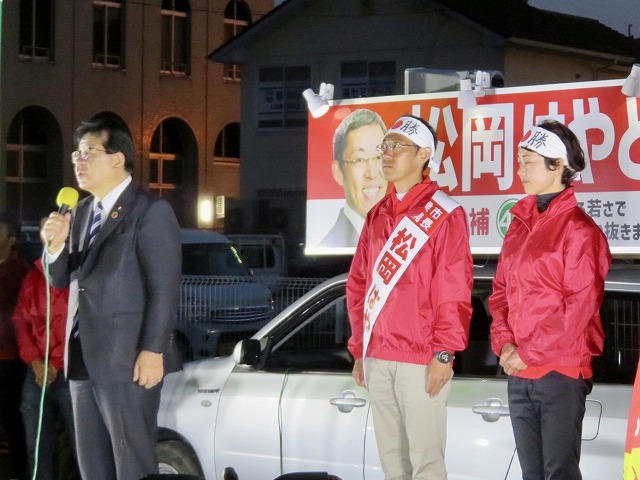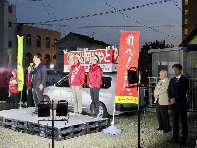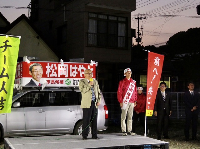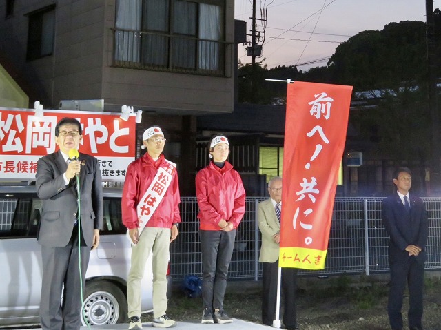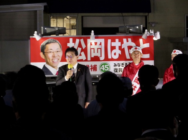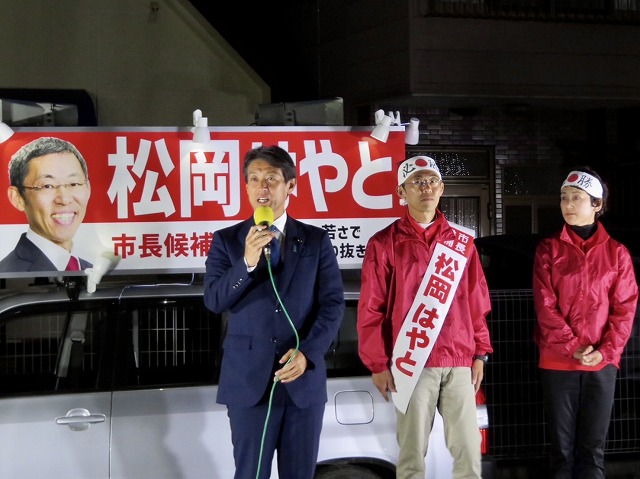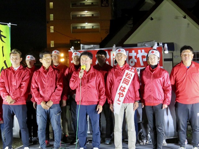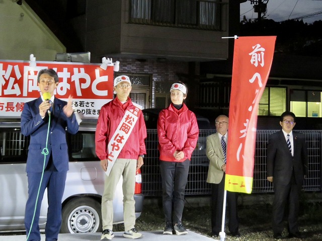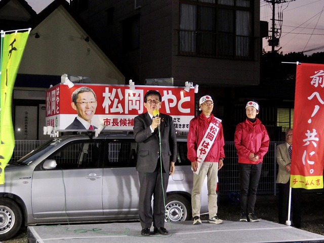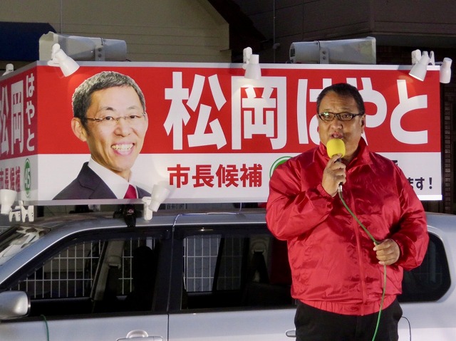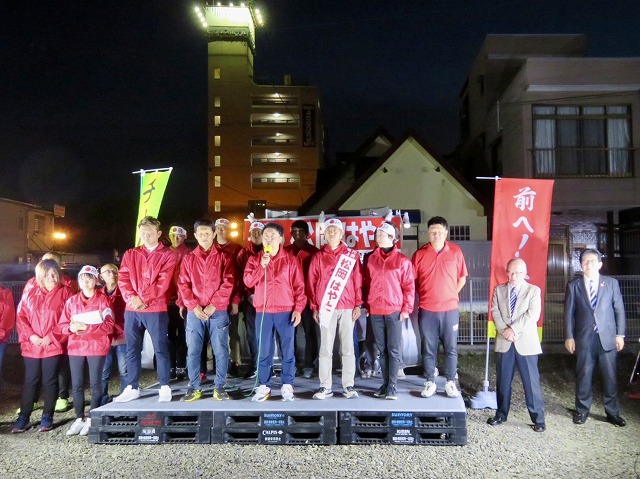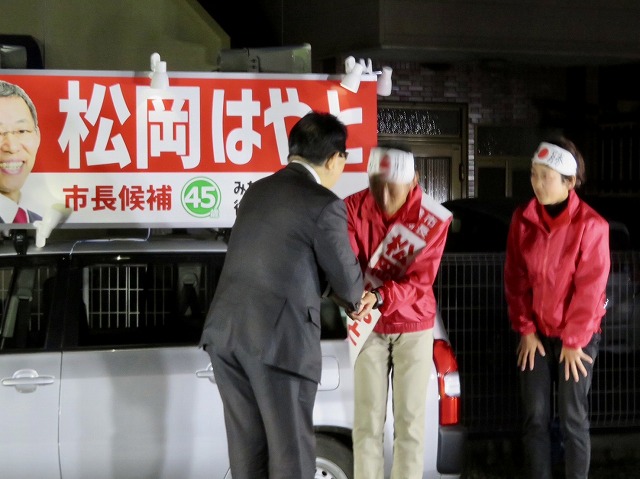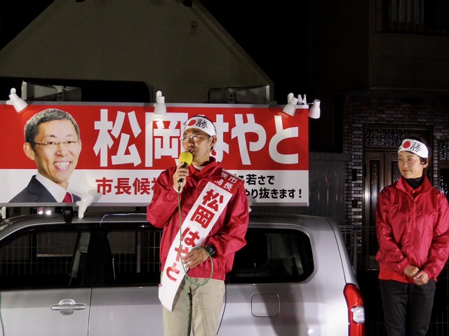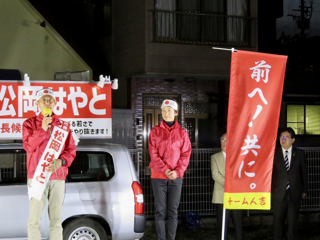 〔 人吉市長 選挙 最終日 〕松岡はやと候補「 マイク納め 」( 人吉市・選挙事務所 )