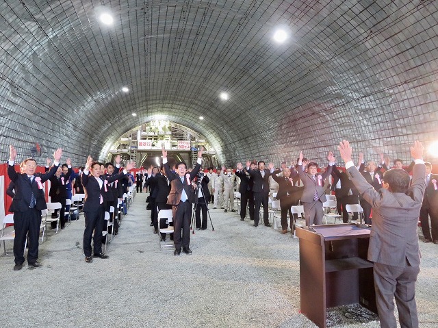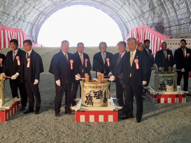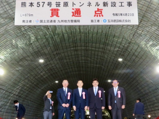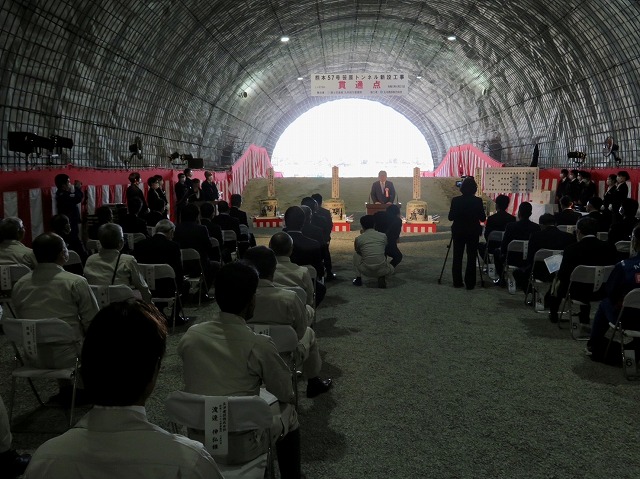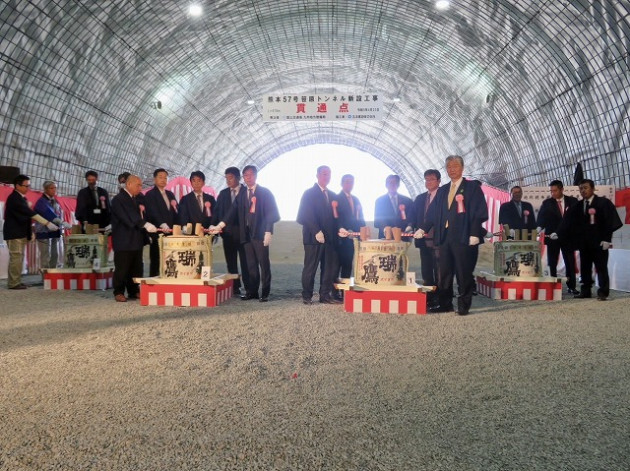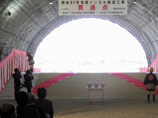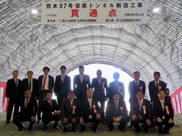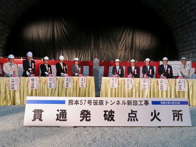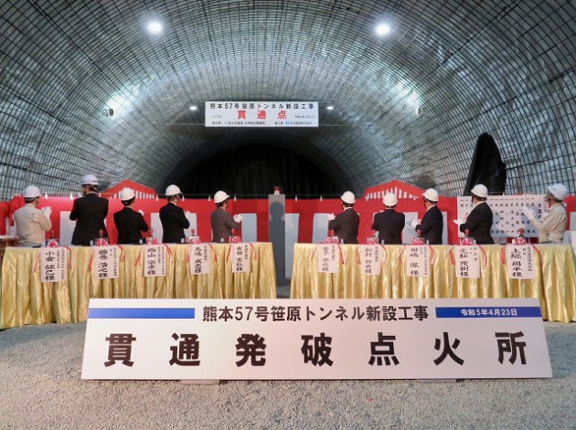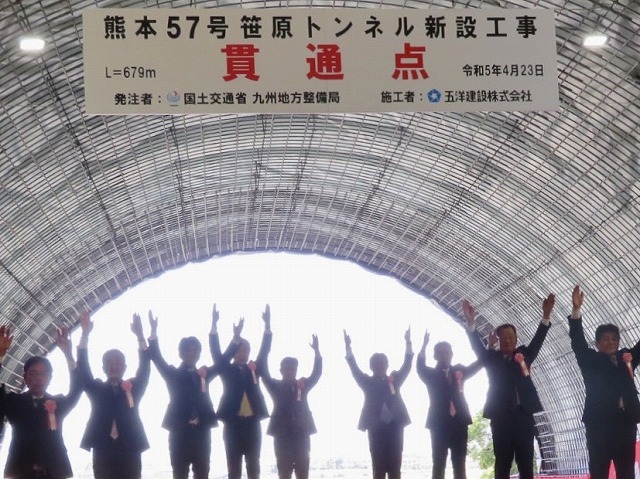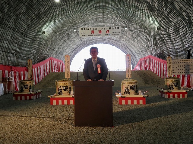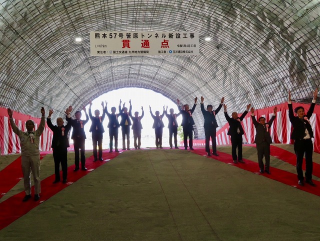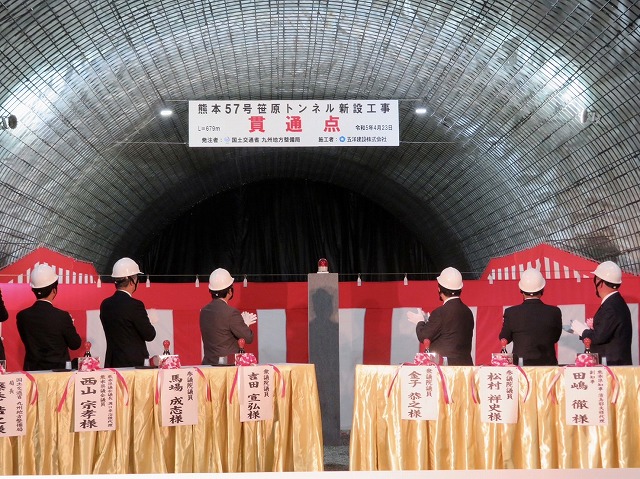 熊本天草幹線道路「宇土道路〔宇土市城塚町〜上網田町 :6.7㎞〕」笹原トンネル〔679m〕貫通式(宇土市網津町・ 笹原トンネル内)
