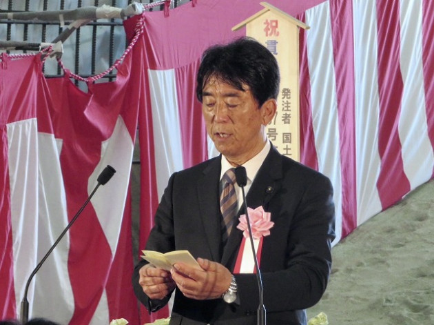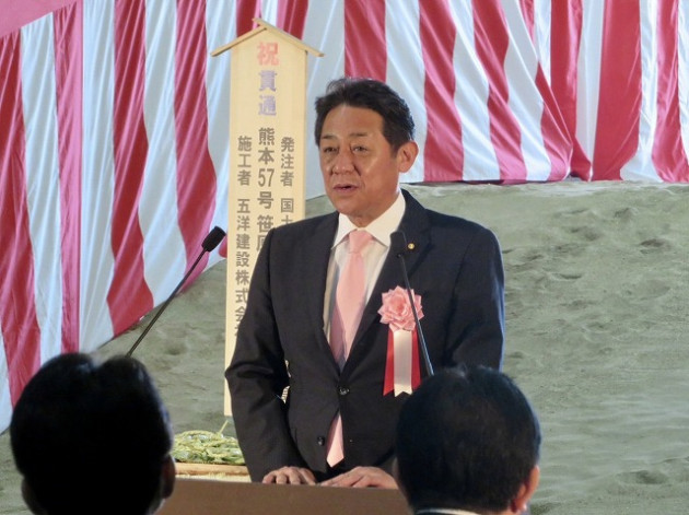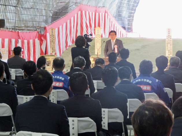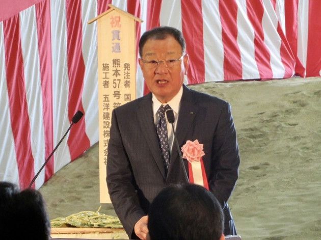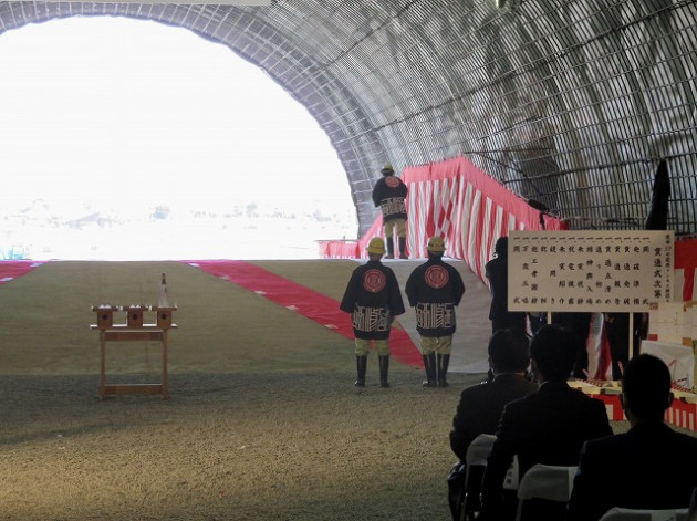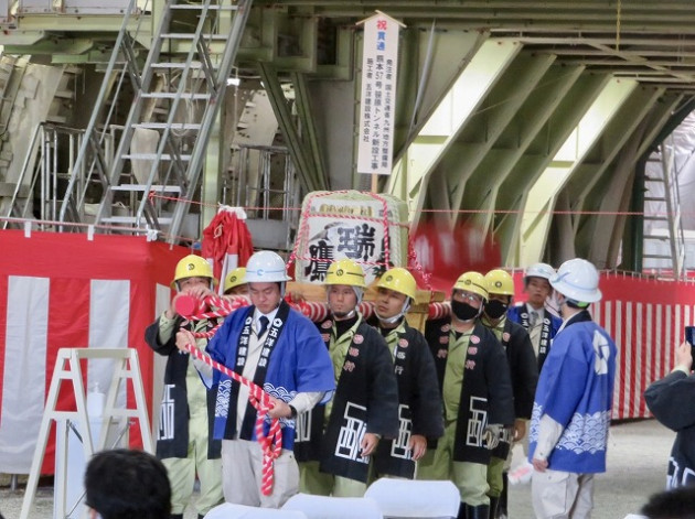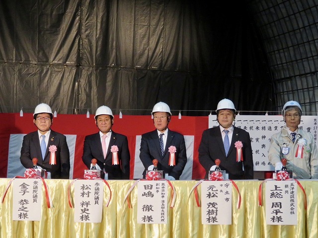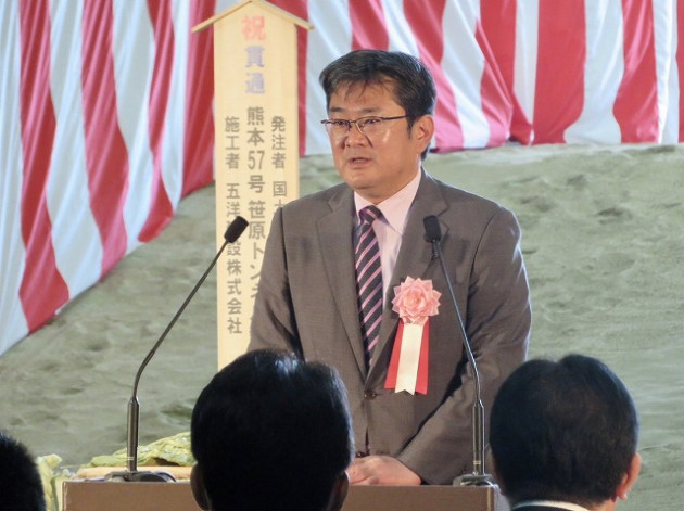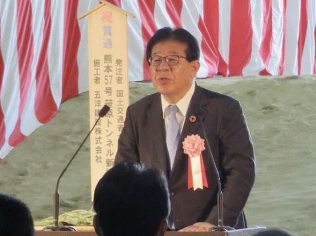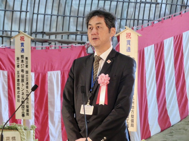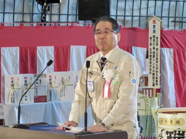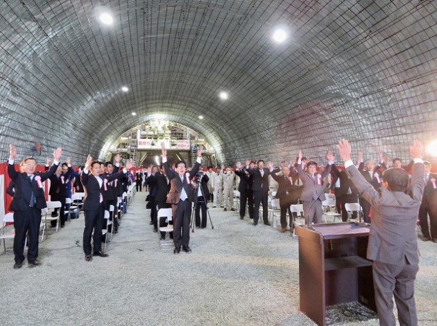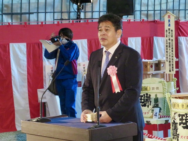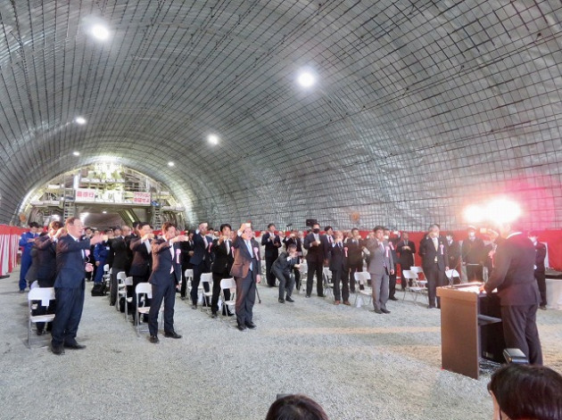 熊本天草幹線道路「宇土道路〔宇土市城塚町〜上網田町 :6.7㎞〕」笹原トンネル〔679m〕貫通式(宇土市網津町・ 笹原トンネル内)