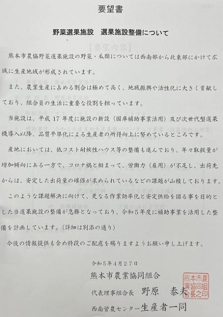 熊本市農業協同組合・副組合ほか役員 要望来室