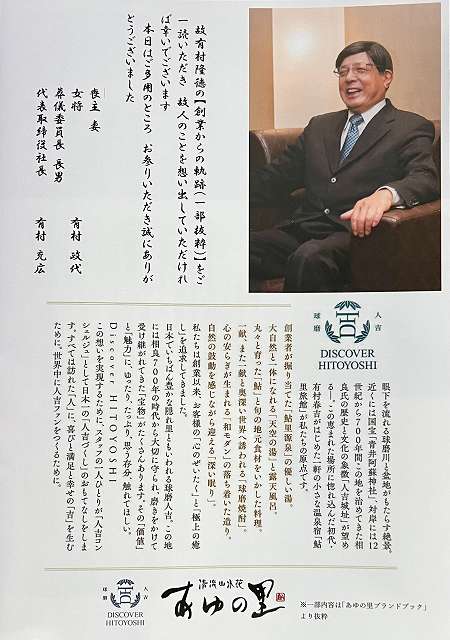 故 有村隆徳様〔 鮎里ホテル 代表取締役会長 〕鮎里ホテル・有村家 合同葬( 人吉市・あゆの里 )