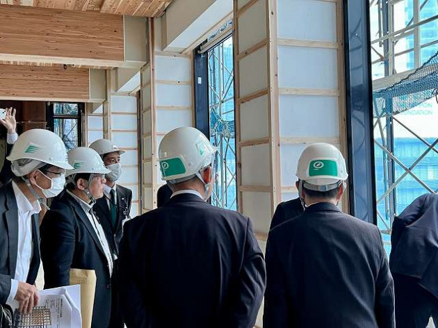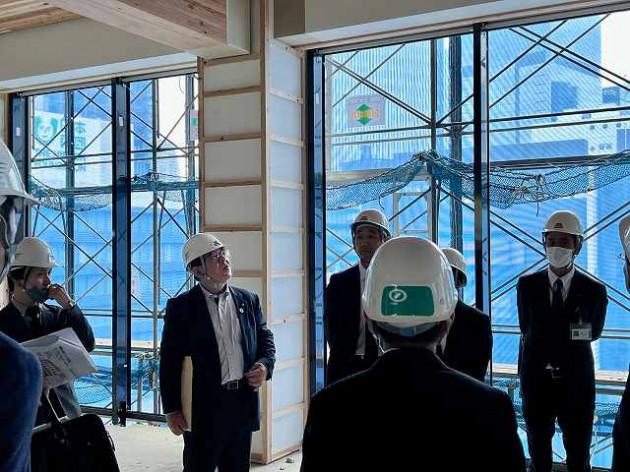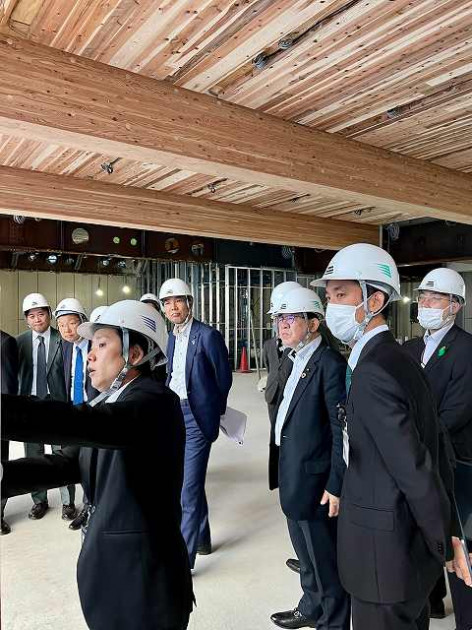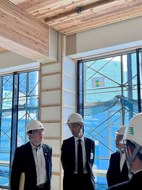 自民党 林政対策委員会役員「中高層木造建築物 視察〔溜池プロジェクト新築工事 建築現場〕」