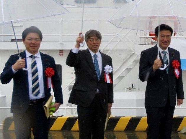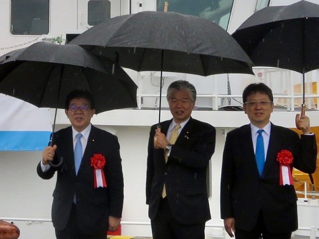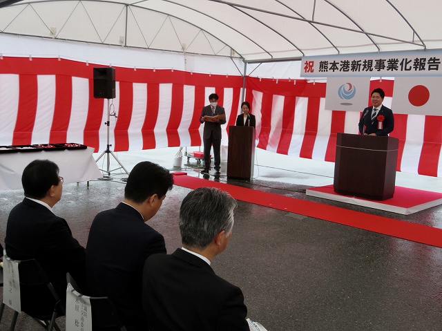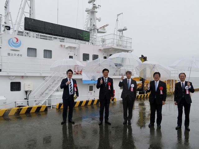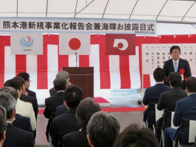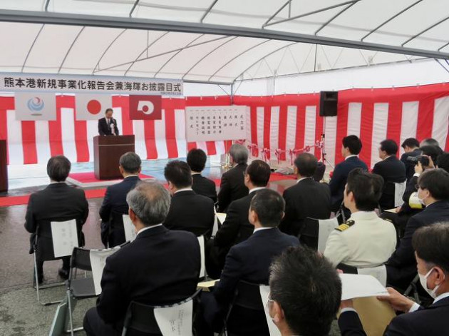 熊本県・国土交通省九州地方整備局『 熊本港 新規事業化〔※耐震強化岸壁 整備 〕報告会 兼 海洋環境整備船「 海輝 」お披露目式( 熊本市・熊本港 コンテナターミナル )』