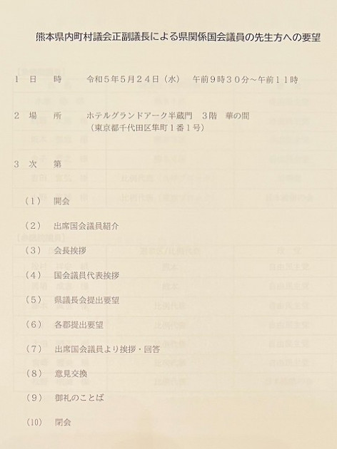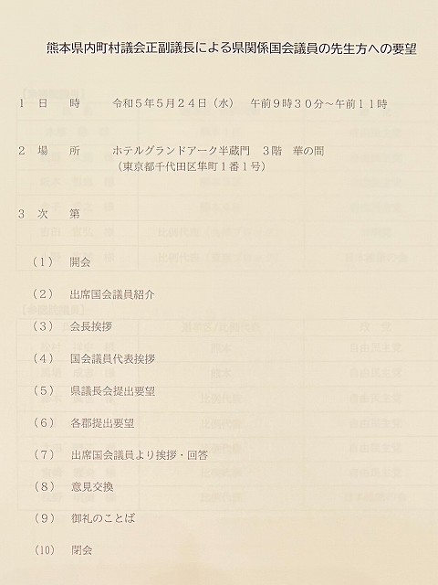 熊本県内町村議会正副議長による県関係国会議員の先生方への要望