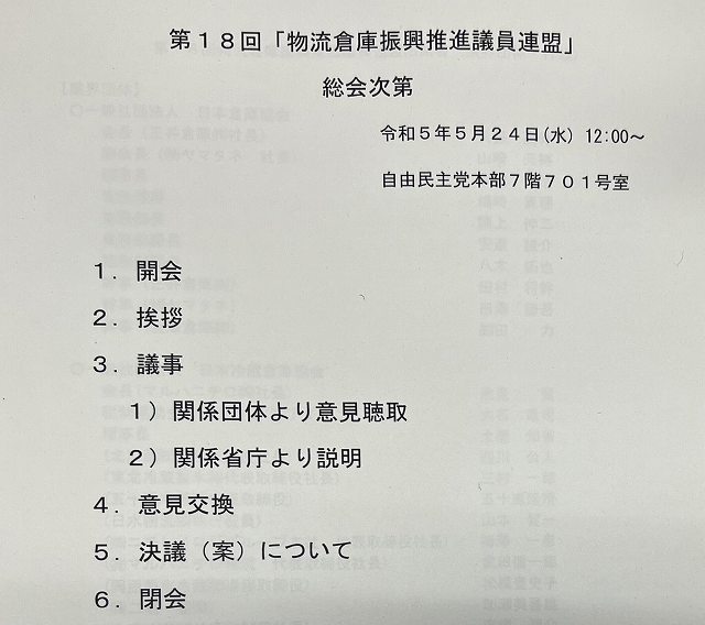 自民党 物流倉庫振興議員連盟 総会 ※副会長