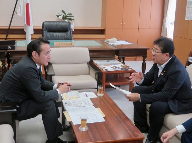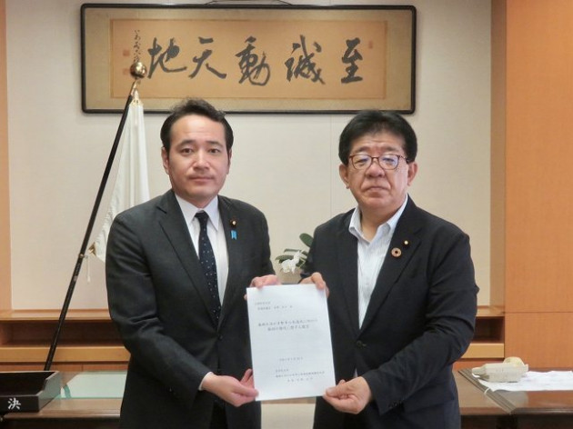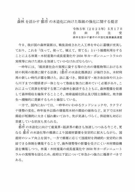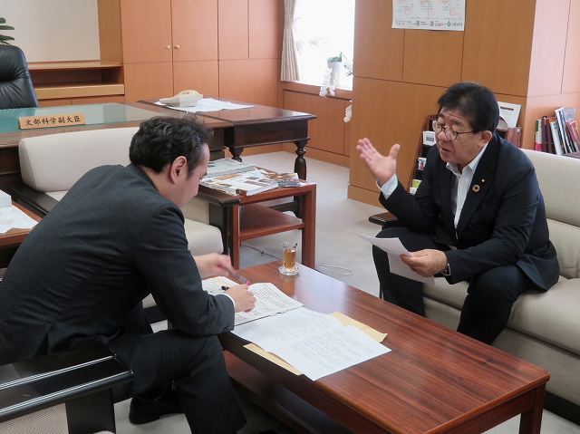 自民党 森林を活かす都市の木造化推進議員連盟「 森林を活かす都市の木造化に向けた取組の強化に関する提言 」永岡桂子 文部科学大臣へ申し入れ〔※簗和夫 文部科学副大臣 対応 〕( 文部科学省・文部科学副大臣室 ) ※幹事長