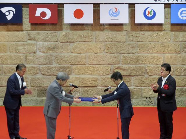 球磨川支川 権限代行工事「 完成式 」( 球磨村・石の交流館やまなみ )
