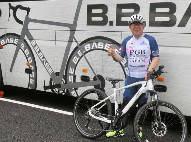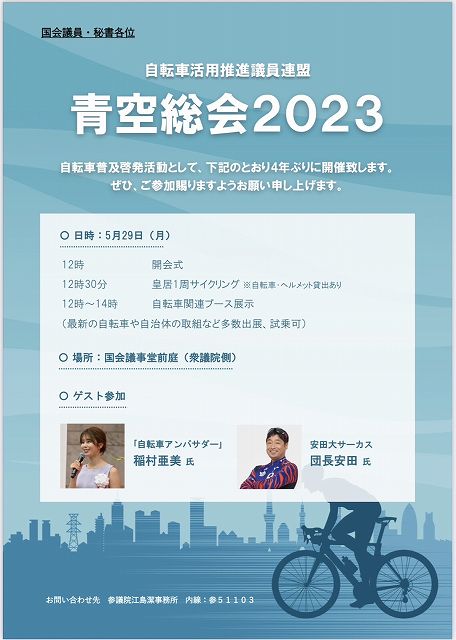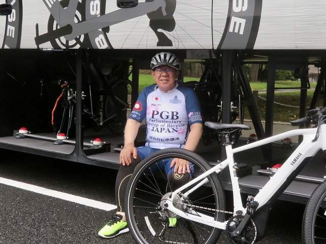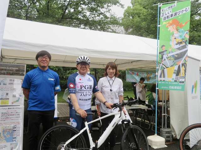 超党派 自転車活用推進議員連盟「 青空総会〔 自転車関係団体 展示ブース見学・激励など 〕 」( 国会議事堂 前庭 ) ※幹事長