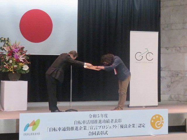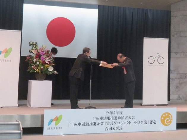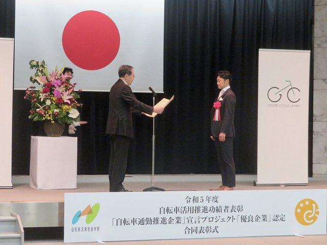 令和5年度 自転車活用推進功績者表彰「自転車通勤推進企業」宣言プロジェクト「優良企業」認定 合同表彰式(国土交通省・会議室)※超党派 自転車活用推進議員連盟・幹事長