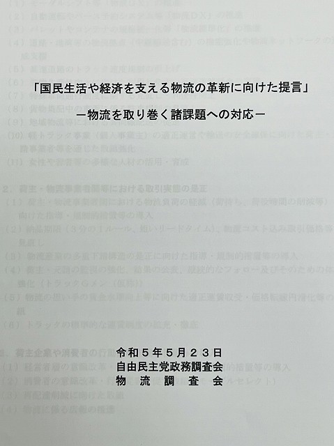 自民党 物流調査会「 岸田文雄総理大臣へ 提言 申し入れ 」( 総理官邸 )※会長代行