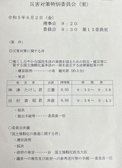 衆議院災害対策特別委員会「 国土強靭化基本法改正法案 起草・趣旨説明、発言、採決、〔委員会決議〕趣旨説明、採決 」 ※与党筆頭理事