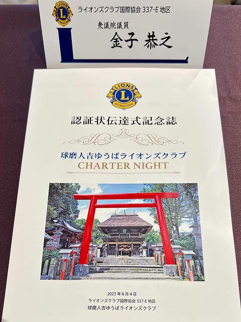 「球磨人吉ゆうばライオンズクラブ」認証状 伝達式(人吉市内)