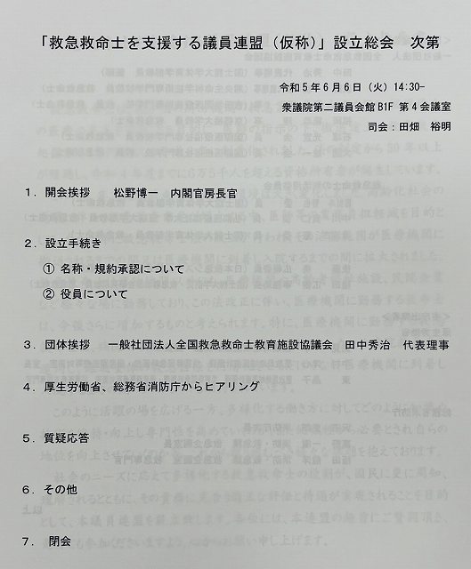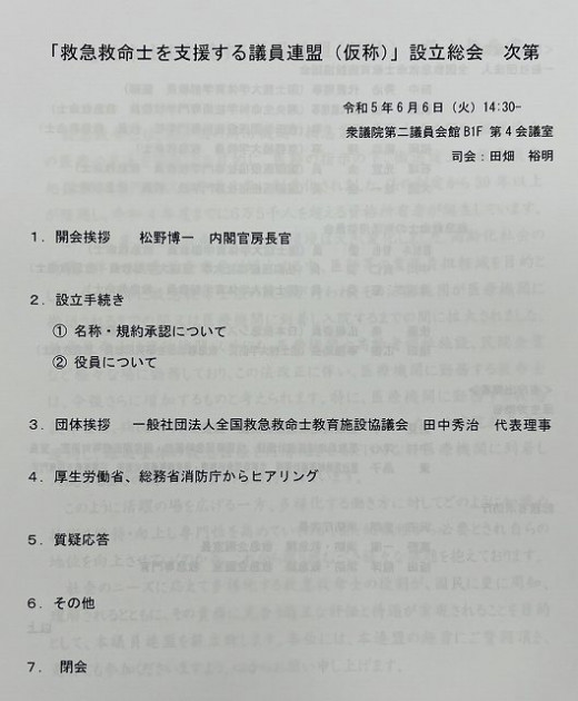 自民党「救急救命士を支援する議員連盟」設立総会 ※発起人