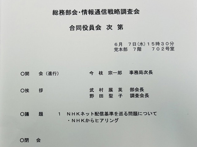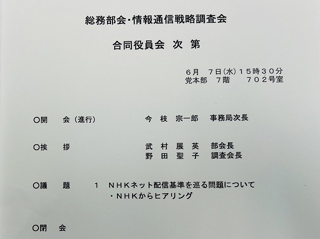 自民党 総務部会・情報通信戦略調査会 合同役員会 ※副会長