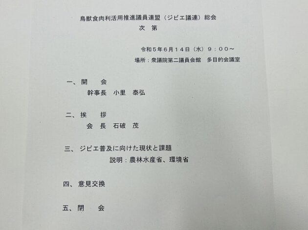 自民党 鳥獣食肉利活用推進議員連盟(※ジビエ議連)総会 ※副会長