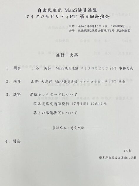 自民党 MaaS議員連盟「マイクロモビリティ PT」勉強会