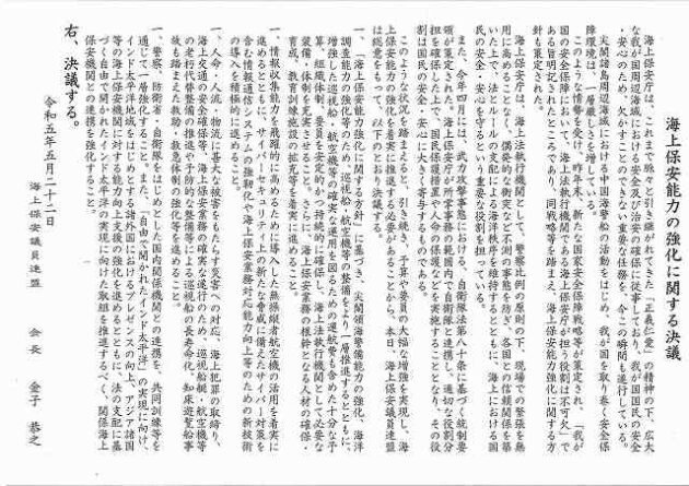 自民党 海上保安議員連盟「 財務省・寺岡 主計局次長へ 「 海上保安能力の強化に関する決議 」申し入れ・要望 」( 財務省 )※会長