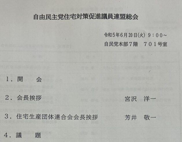 自民党 住宅対策促進議員連盟 総会 ※幹事