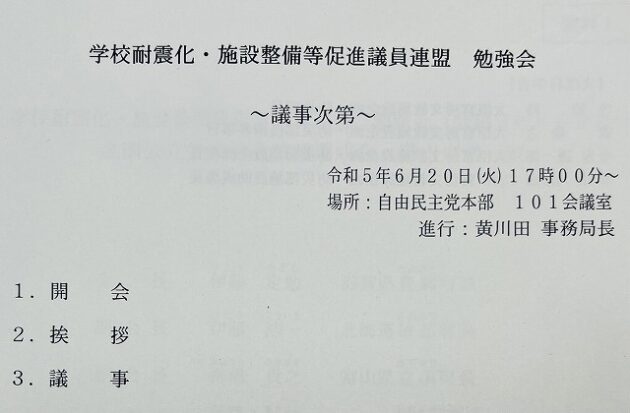 自民党 学校耐震化・施設整備等促進議員連盟「 勉強会 」 ※副幹事長