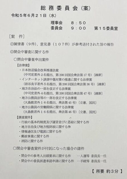 衆議院 総務委員会「 閉会中審査 」