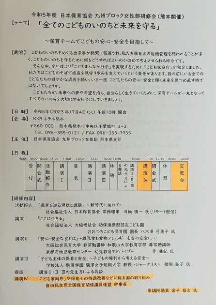 令和5年度 日本保育協会「 九州ブロック 女性部 」研修会( 熊本市・KKRホテル熊本 ) ※自民党全国保育関係議員連盟 幹事長として 講演