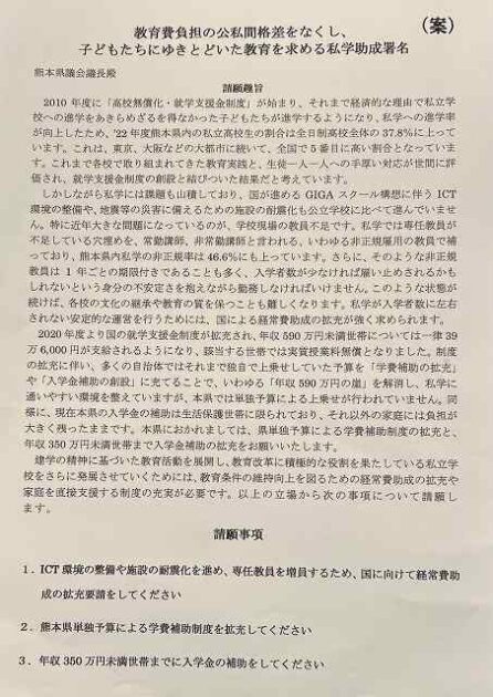 熊本私学助成をすすめる会・竹原代表 要望来室