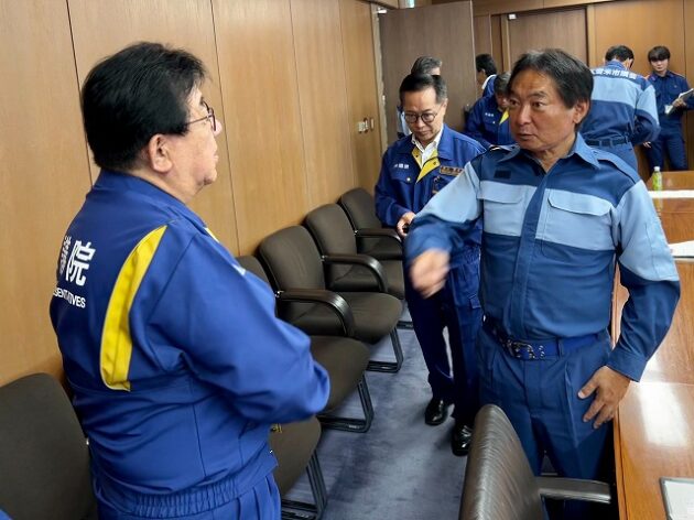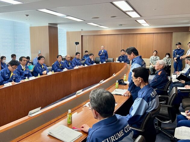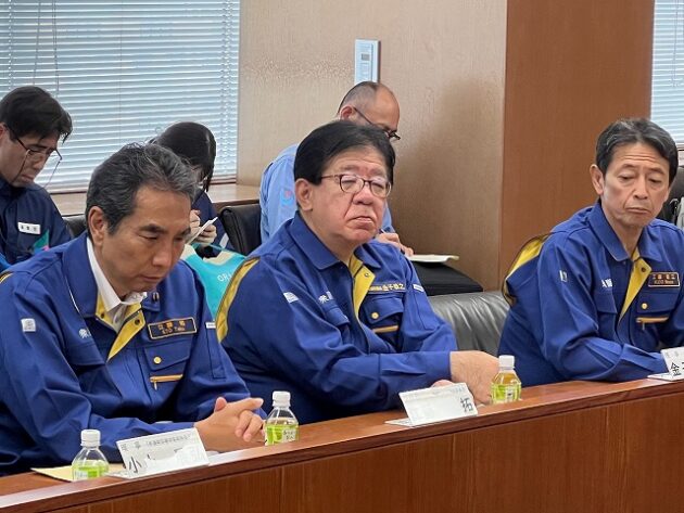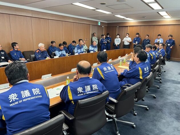 衆議院災害対策特別委員会「 令和5年梅雨前線による大雨に係る現地視察( 福岡県・佐賀県 )」③福岡県久留米市役所にて、福岡県副知事、久留米市長、久留米市議会議長との意見交換会 ※与党筆頭理事