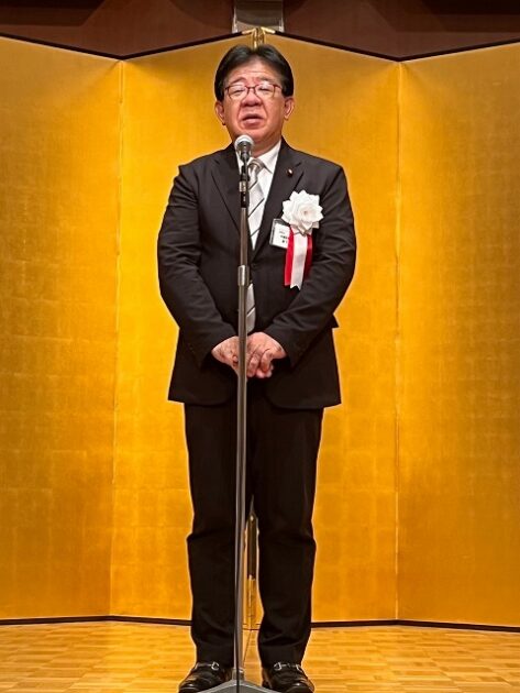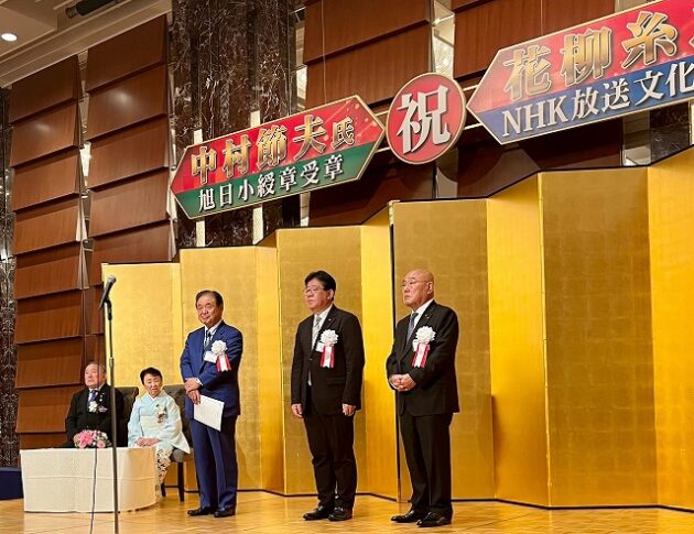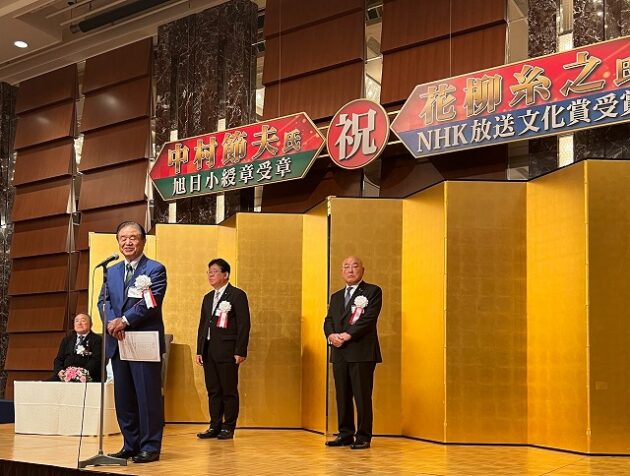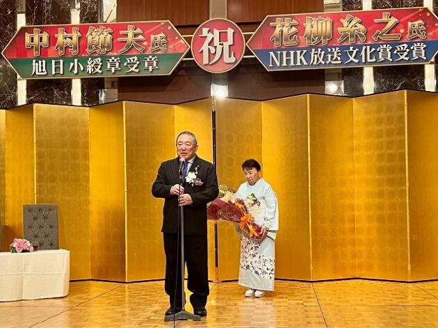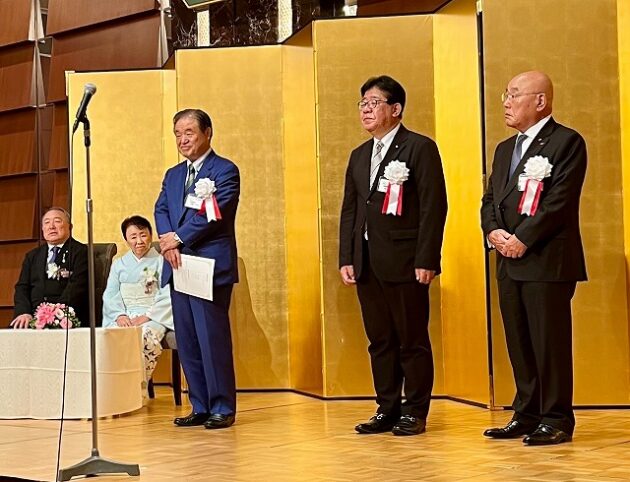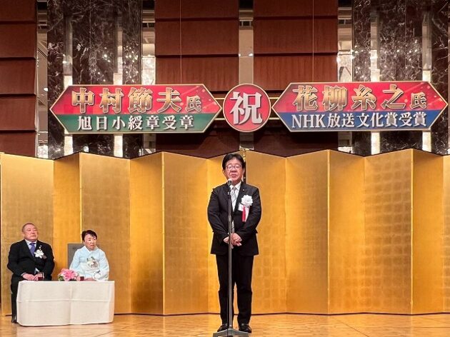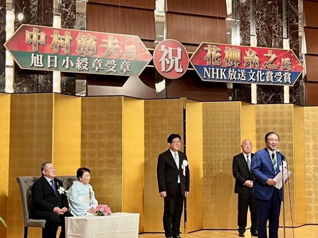 日本チアリーディング協会・中村節夫 会長「 叙勲 受章祝賀会 」並びに 日本チアリーディング協会・花柳糸之 理事「 NHK放送文化賞 受賞祝賀会 」( ロイヤルパークホテル東京日本橋 ) ※発起人〔 チアリーディング推進議員連盟 幹事長 〕として 中締め挨拶