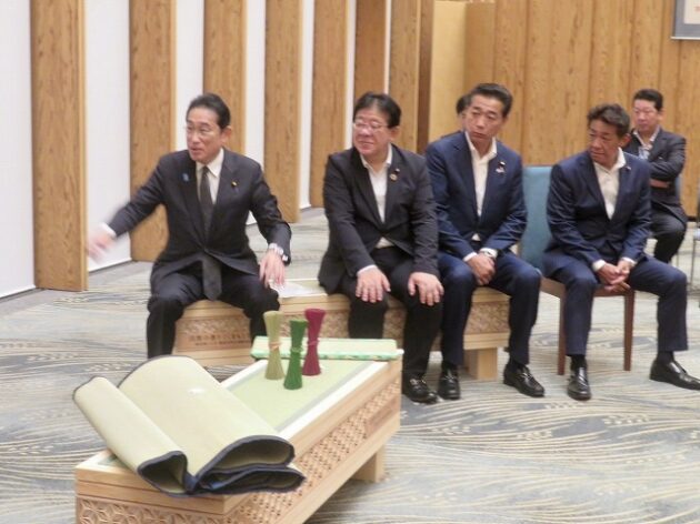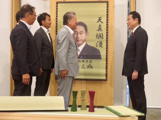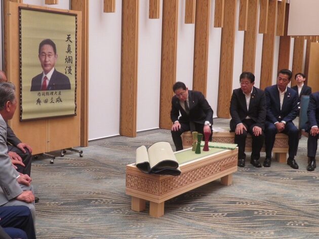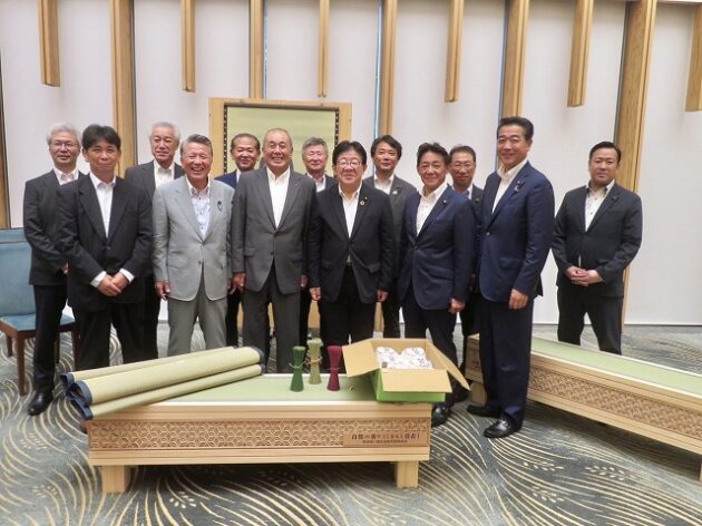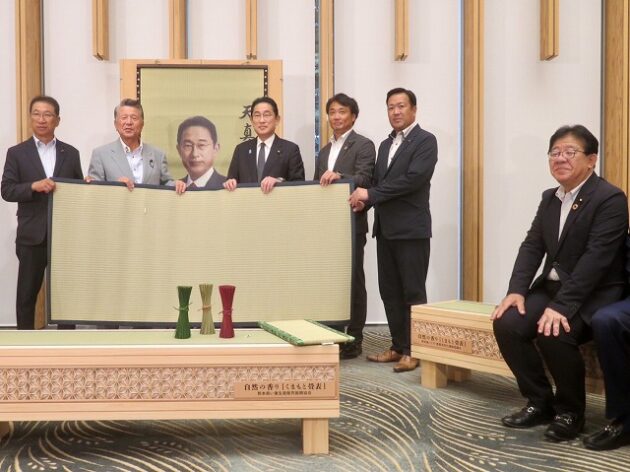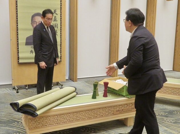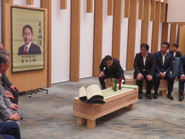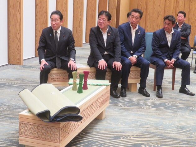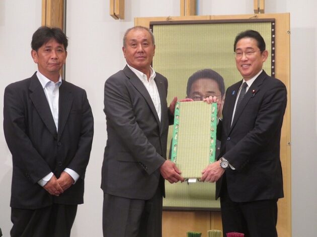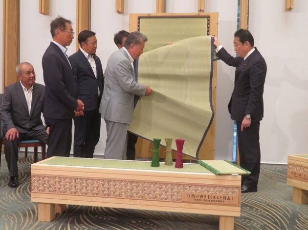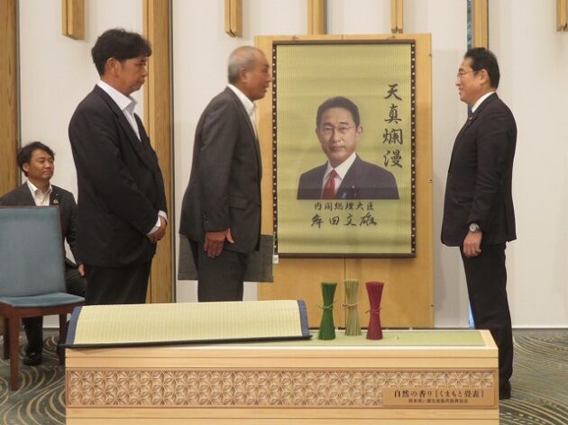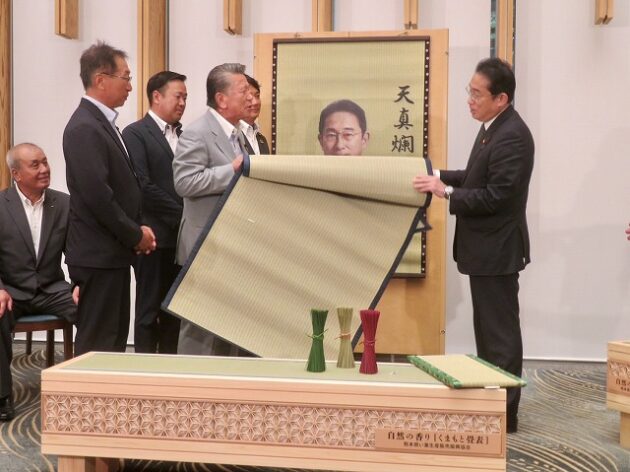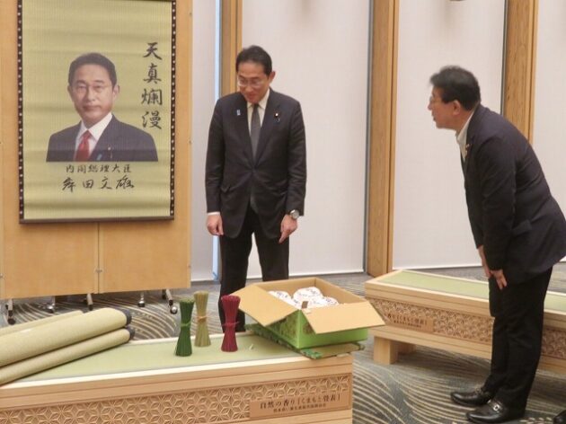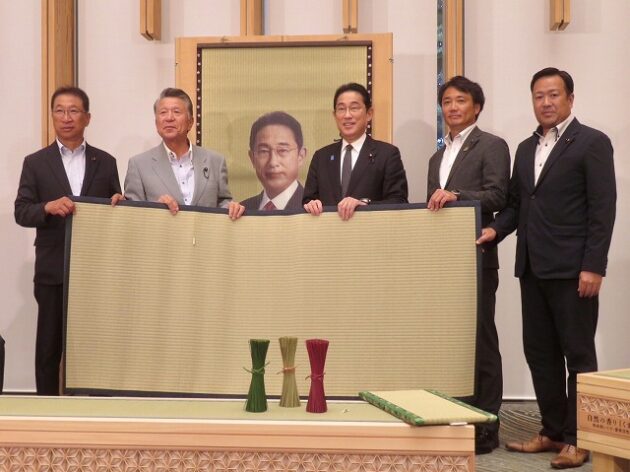 熊本県い業生産販売振興協会、熊本県いぐさ・畳表活性化協議会、熊本県議会い業振興議員団 「 岸田文雄内閣総理大臣へ い草製品の贈呈( 総理官邸 )※同席
