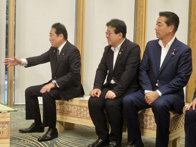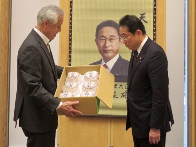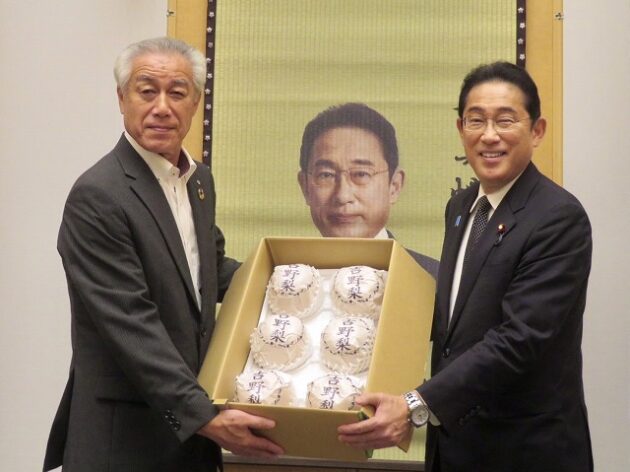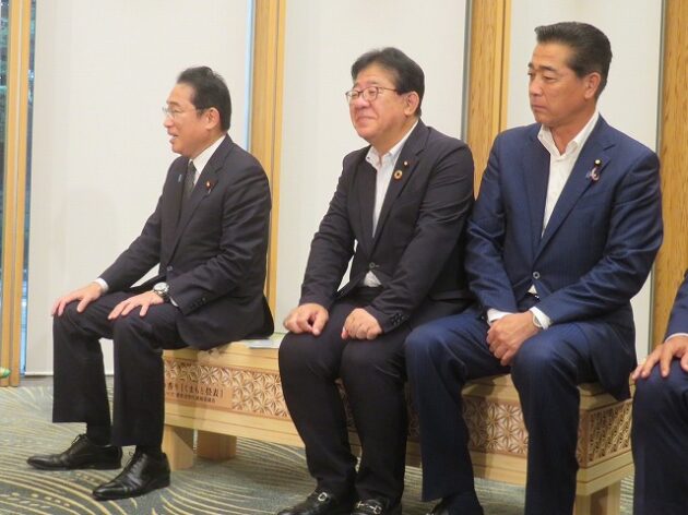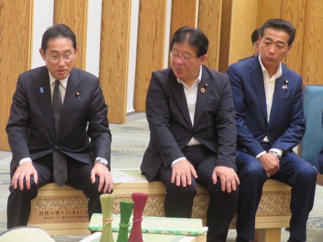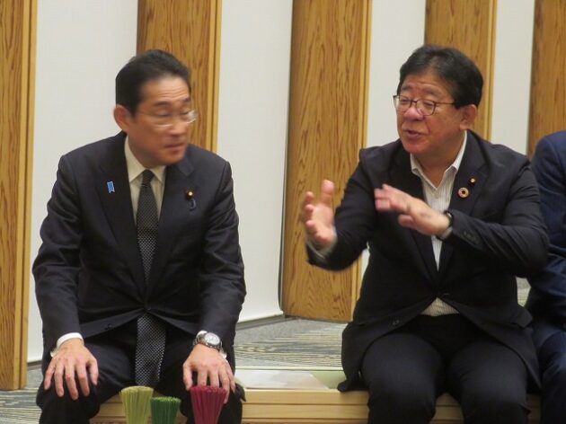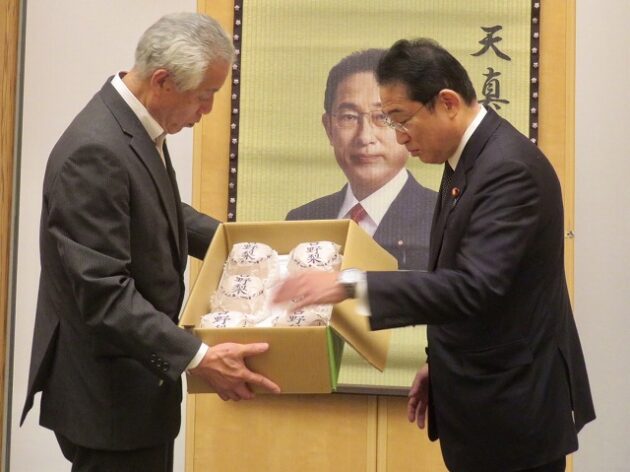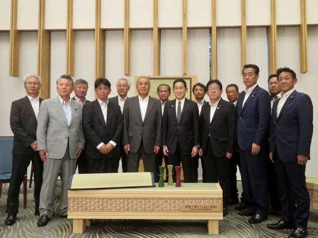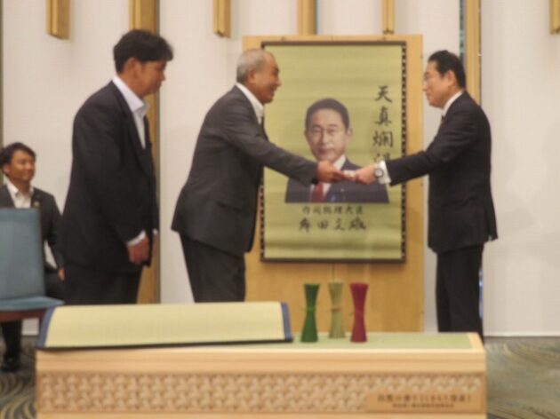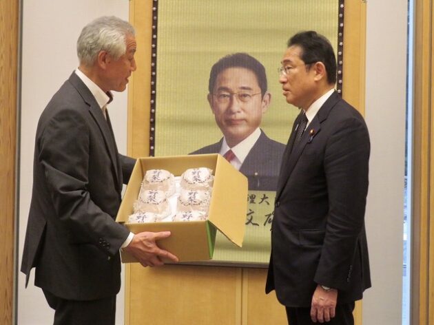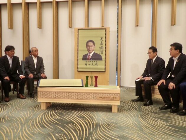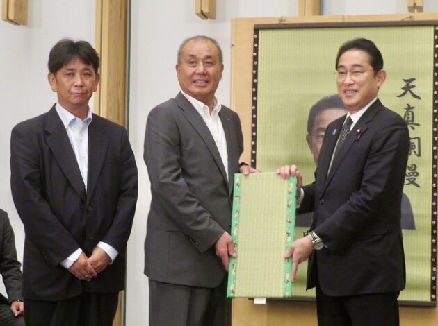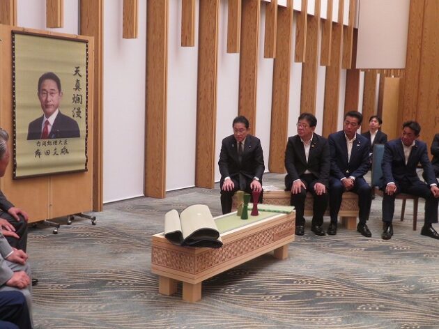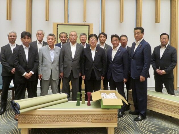 熊本県い業生産販売振興協会、熊本県いぐさ・畳表活性化協議会、熊本県議会い業振興議員団 「 岸田文雄内閣総理大臣へ い草製品の贈呈( 総理官邸 )※同席
