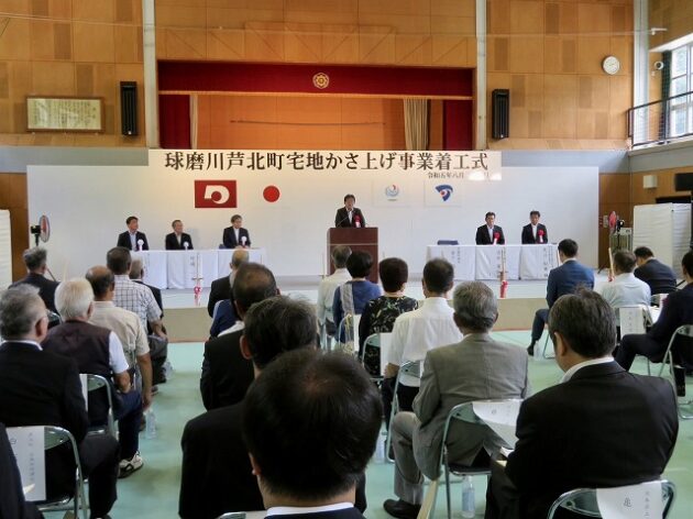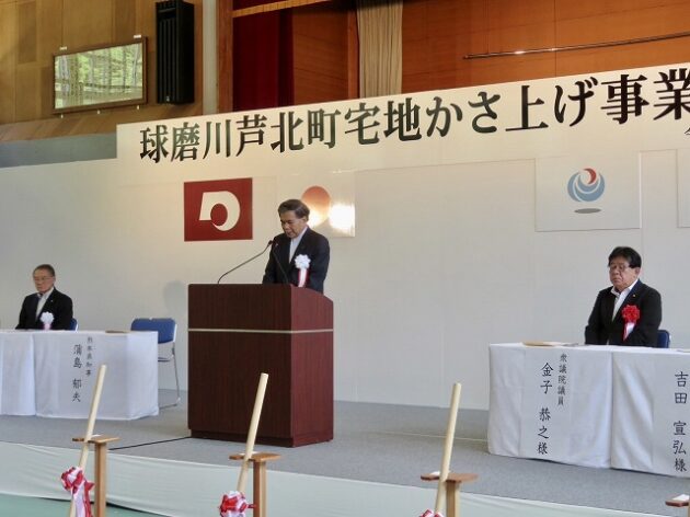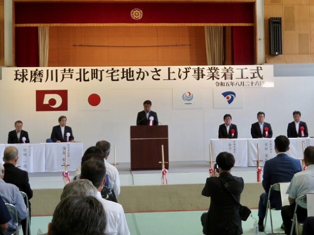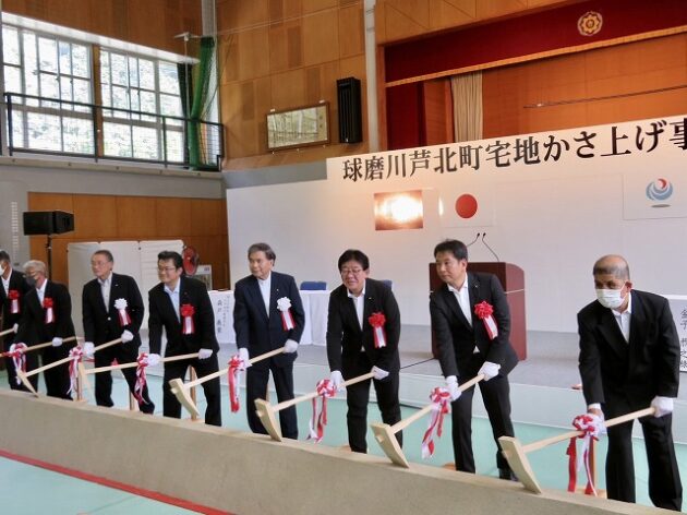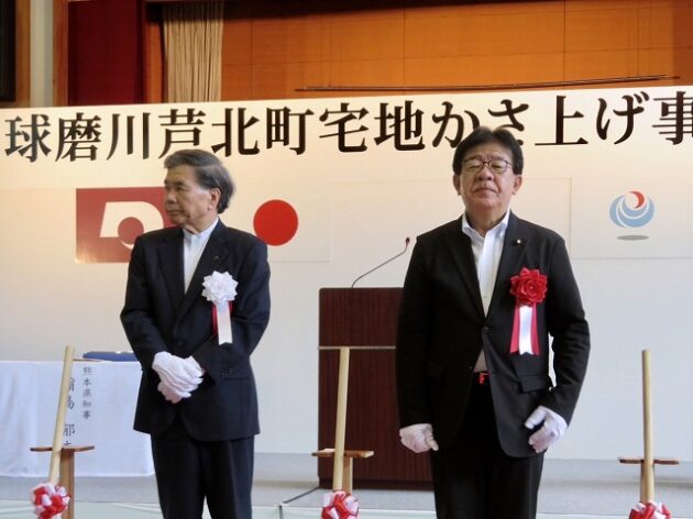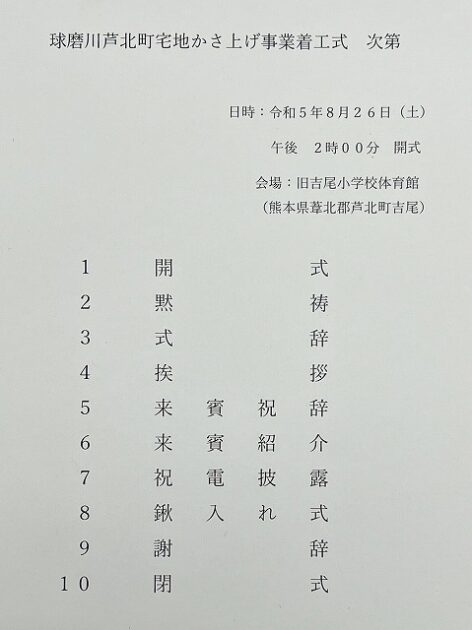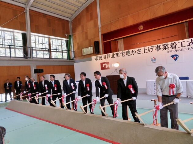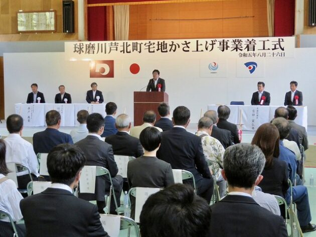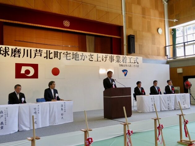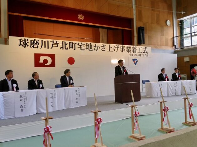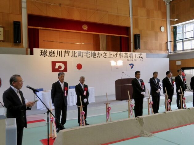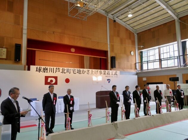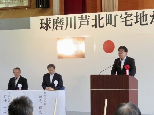 国土交通省九州地方整備局・熊本県・芦北町「 球磨川芦北町宅地かさ上げ事業 着工式 」( 芦北町・旧 吉尾小学校体育館 )