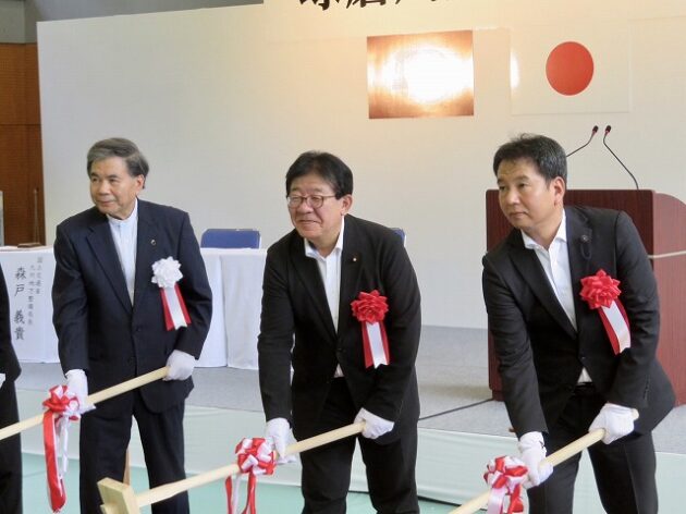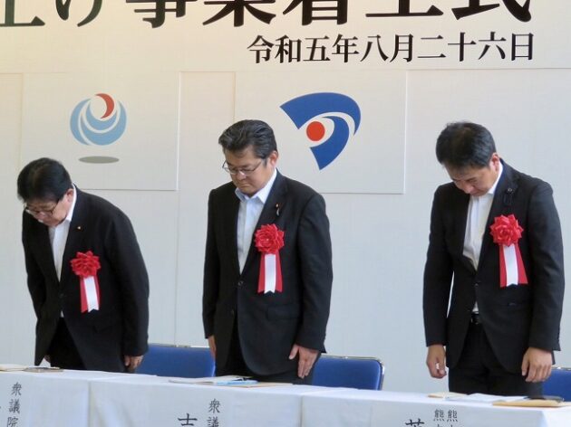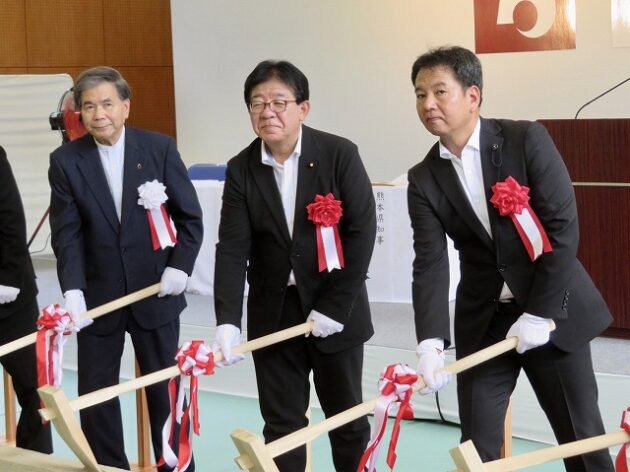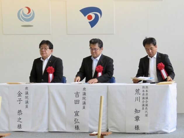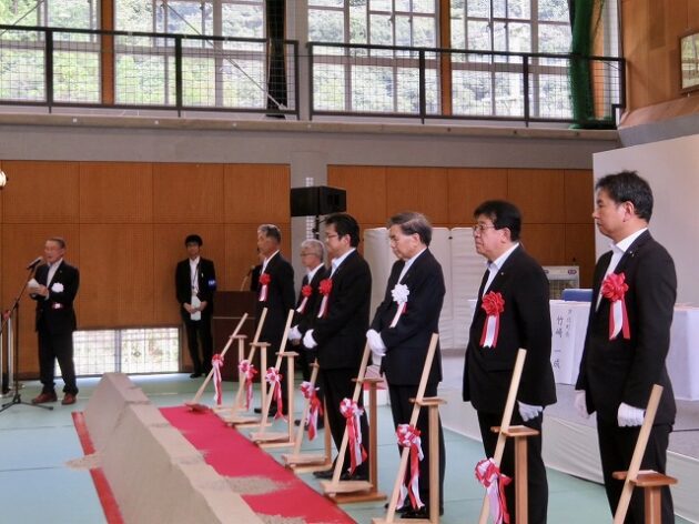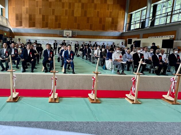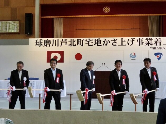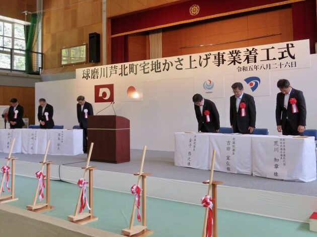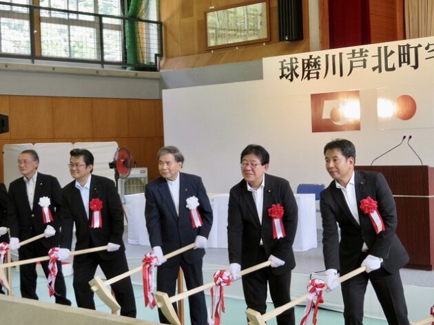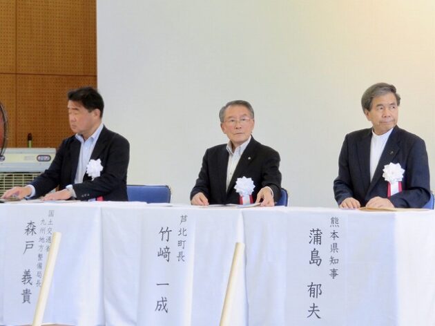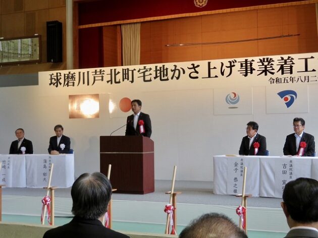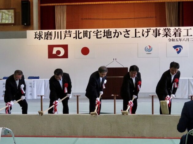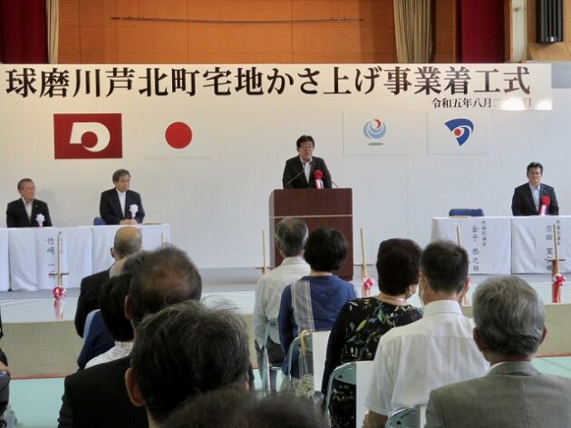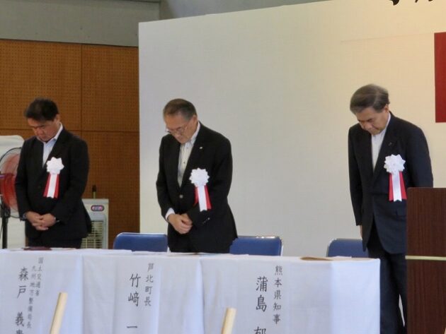 国土交通省九州地方整備局・熊本県・芦北町「 球磨川芦北町宅地かさ上げ事業 着工式 」( 芦北町・旧 吉尾小学校体育館 )