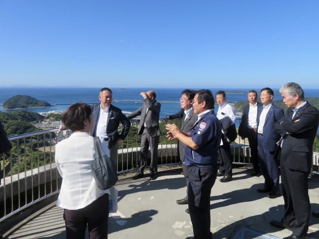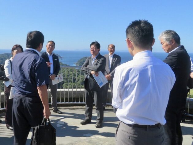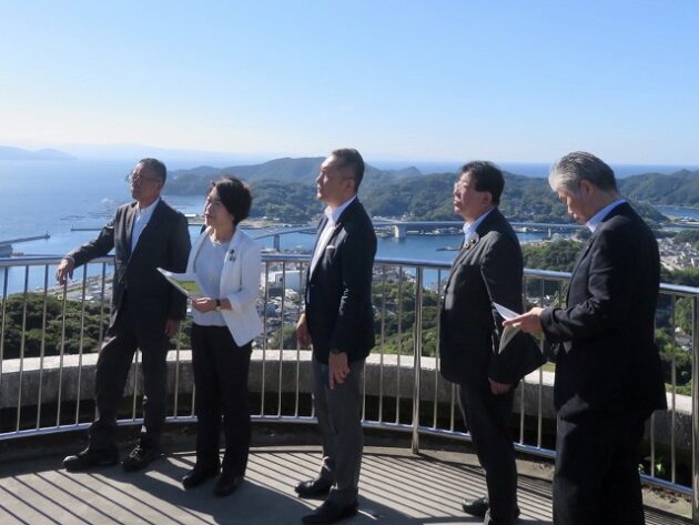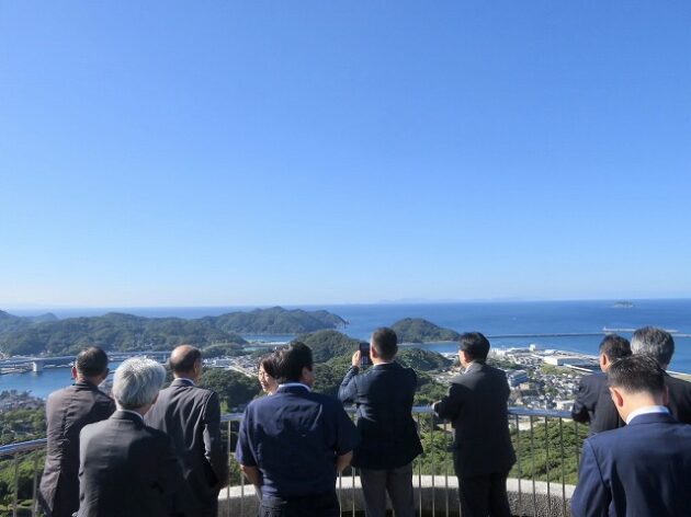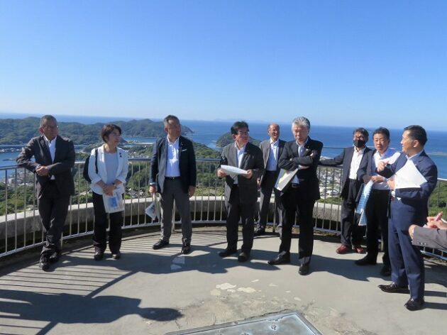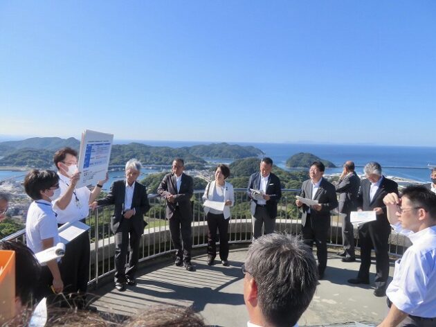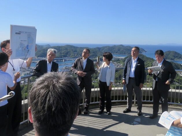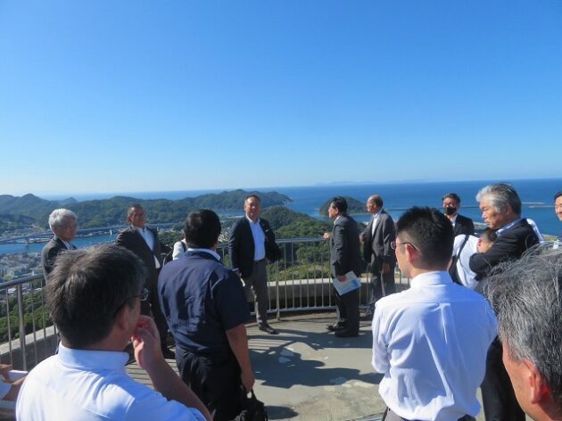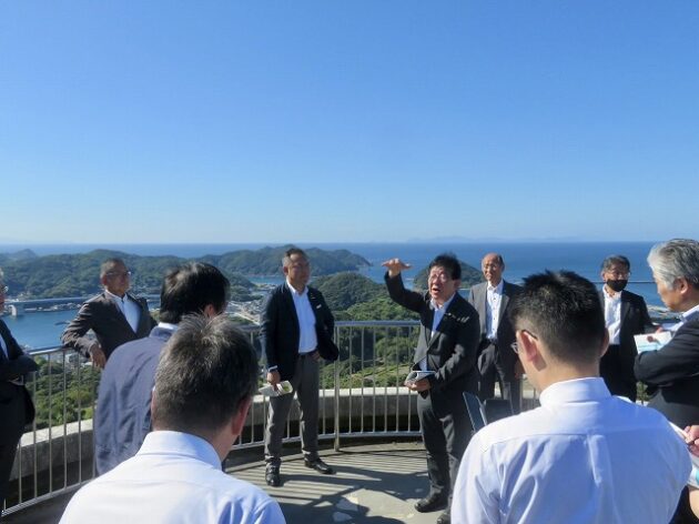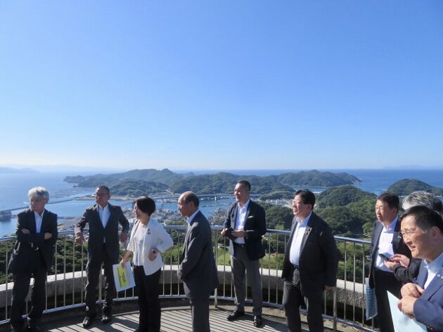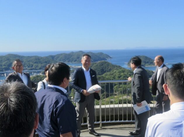 自民党 養殖漁業懇話会「 現地視察〔 鹿児島県・熊本県 〕⑨「牛深地区」の概要説明( 熊本県 天草市 「 桜木展望所 」) 」※事務局長