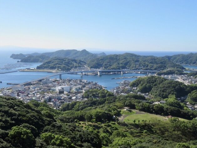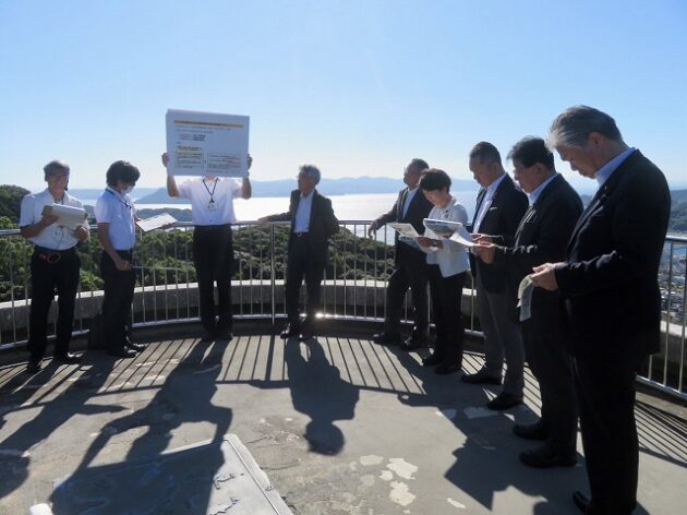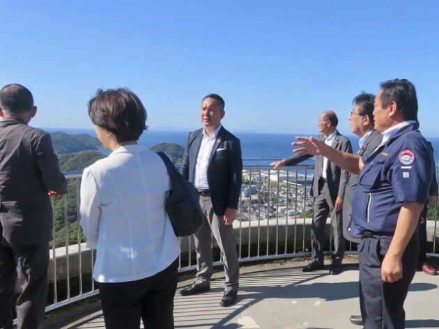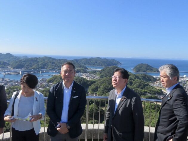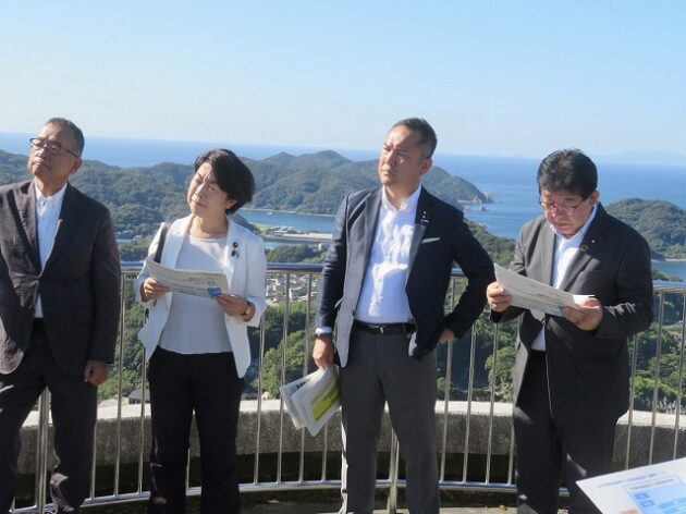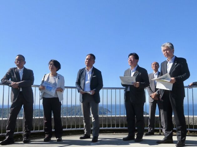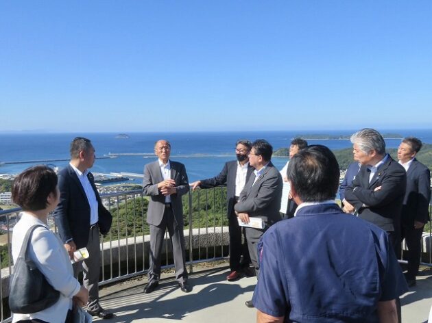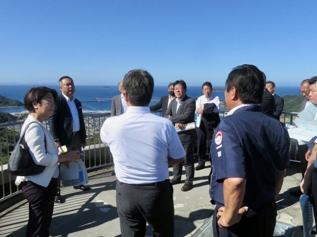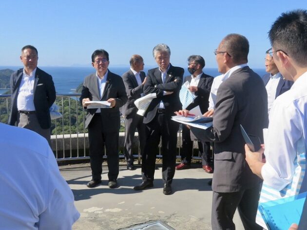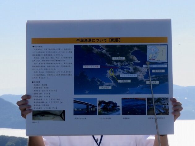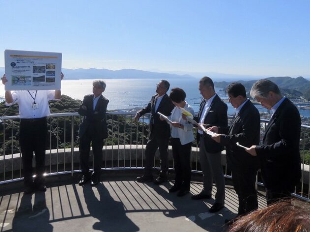 自民党 養殖漁業懇話会「 現地視察〔 鹿児島県・熊本県 〕⑨「牛深地区」の概要説明( 熊本県 天草市 「 桜木展望所 」) 」※事務局長