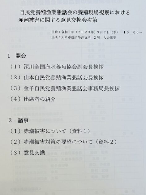 自民党 養殖漁業懇話会「 現地視察〔 鹿児島県・熊本県 〕⑩意見交換会( 熊本県 天草市役所・牛深支所) 」※事務局長