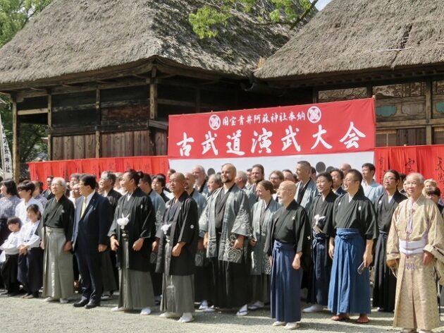 兵法タイ捨流 興流 四百五十周年記念「 古武道演武大会 」※記念写真撮影( 人吉市・国宝 青井阿蘇神社 奉納 )