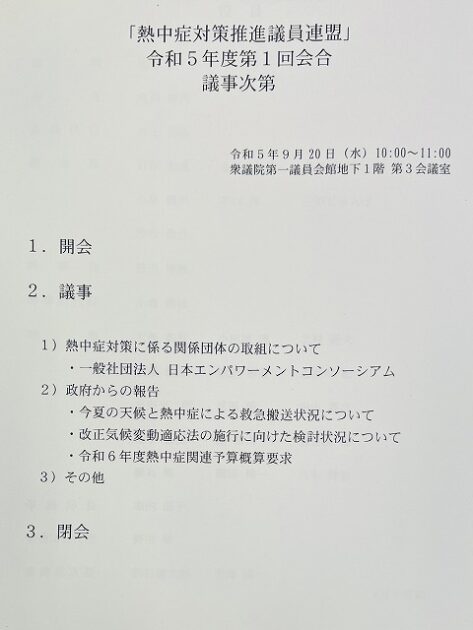 自民党 熱中症対策推進議員連盟 会合 ※副会長