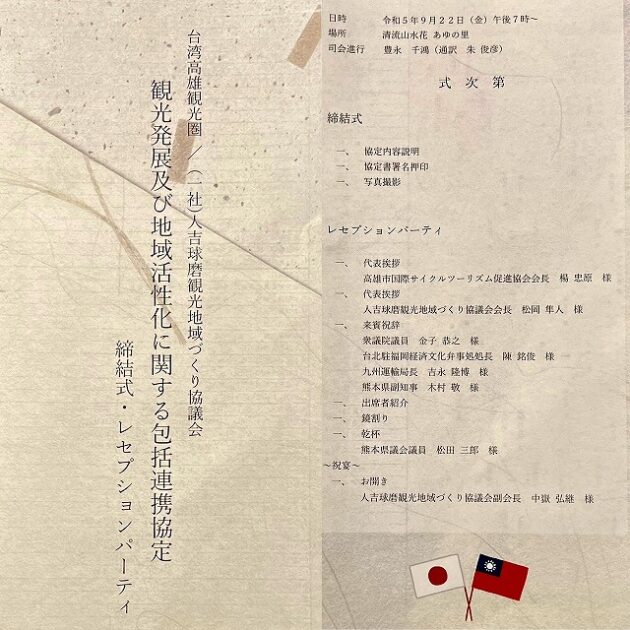 台湾高雄観光圏・人吉球磨観光地域づくり協議会「 観光発展 及び 地域活性化に関する包括連携協定 」締結式( 人吉市・あゆの里 )