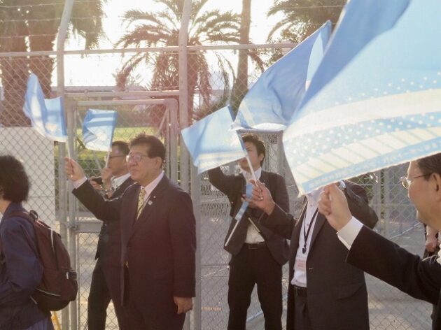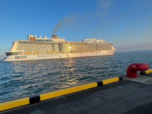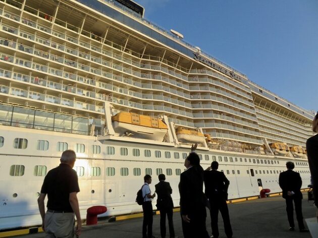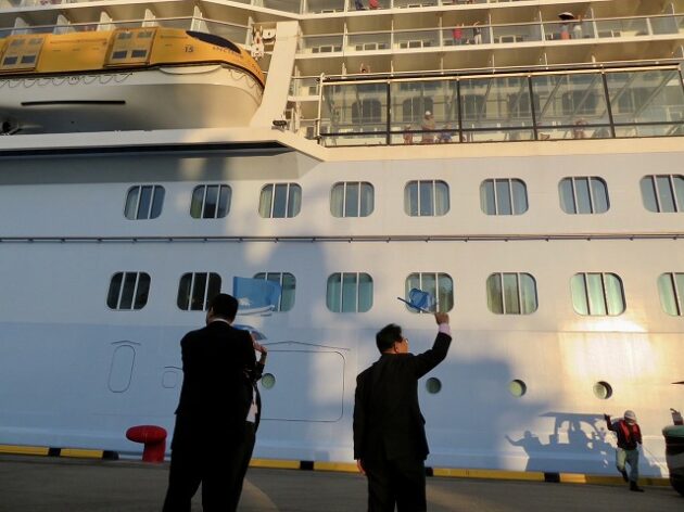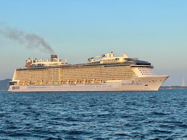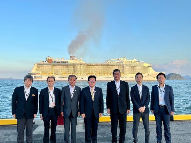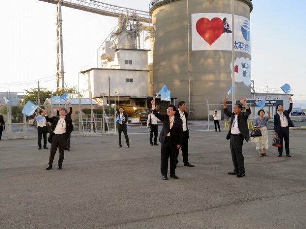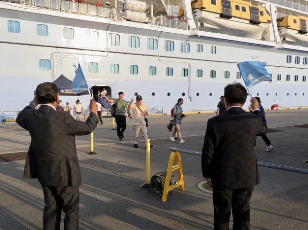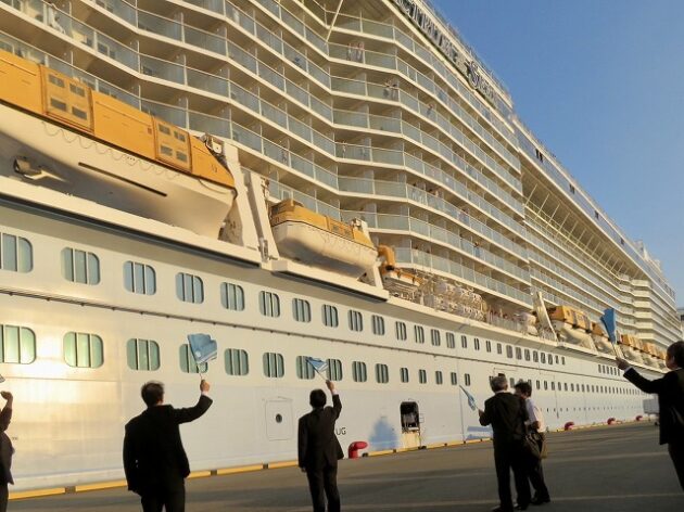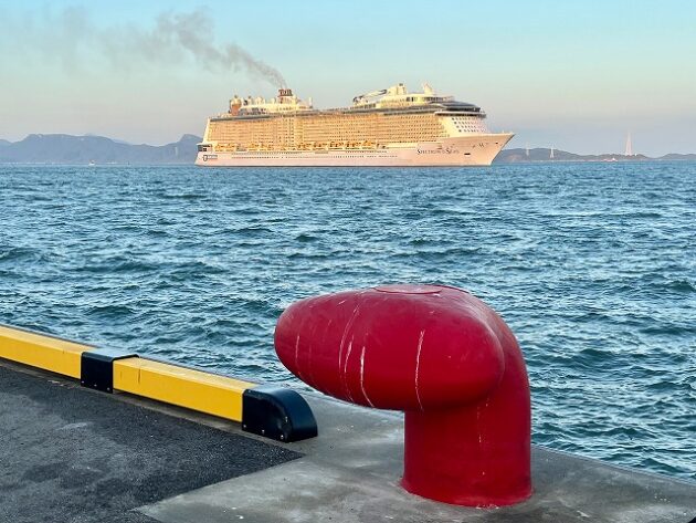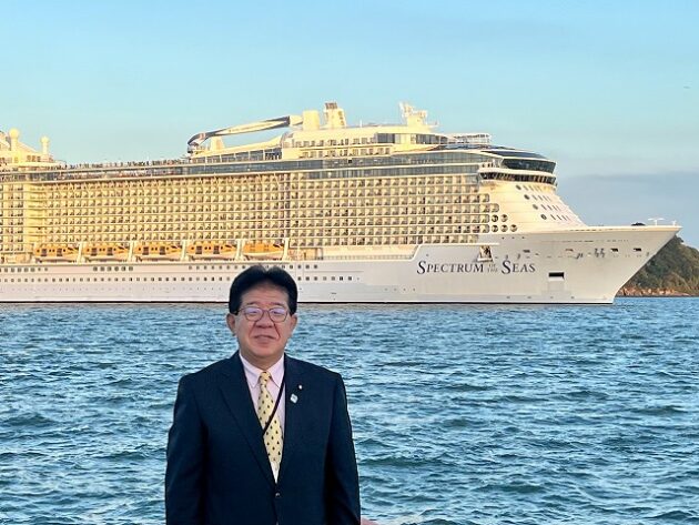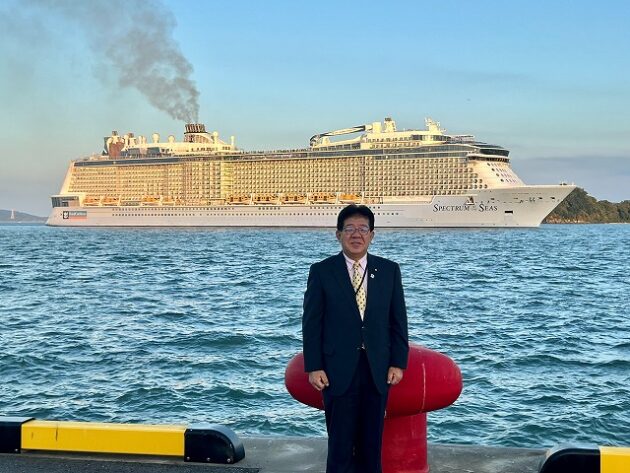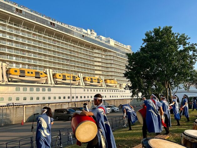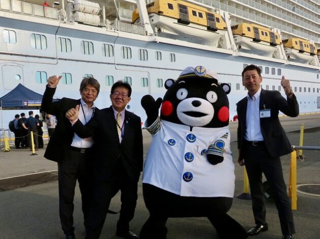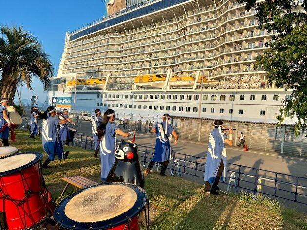 ロイヤル・カリビアン・インターナショナル社「 スペクトラム・オブ・ザ・シーズ 〔17万トン、全長347m 〕」寄港 お出迎え( くまモンポート八代 )