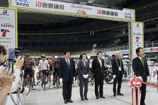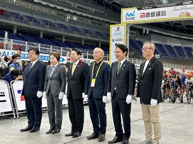 第1回「 マイナビ ツール・ド・九州 2023 」福岡ステージ 開会式( 北九州メディアドーム ) ※超党派「 #自転車活用推進議員連盟 」を代表して出席
