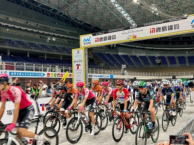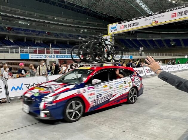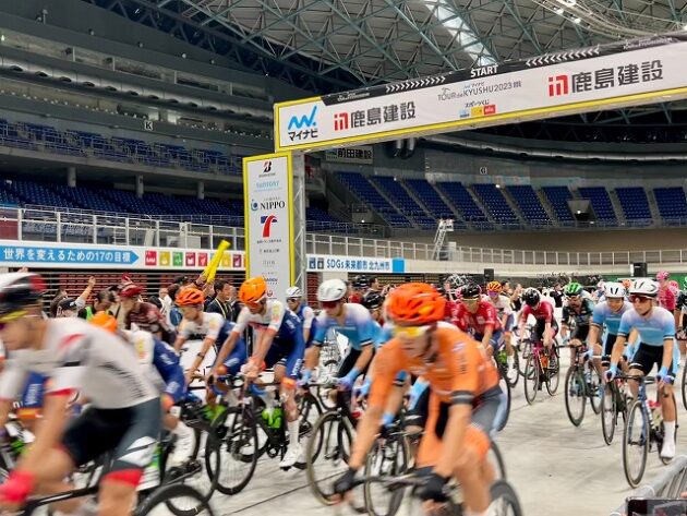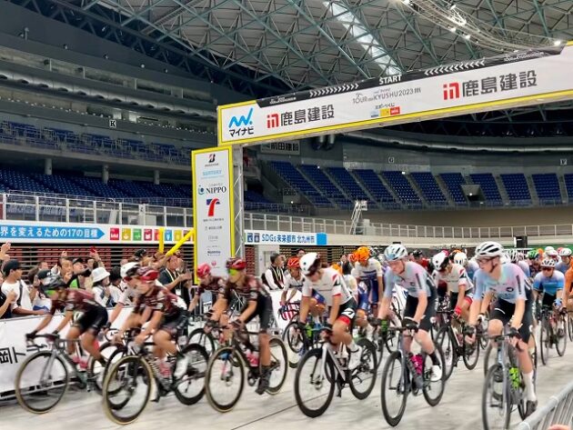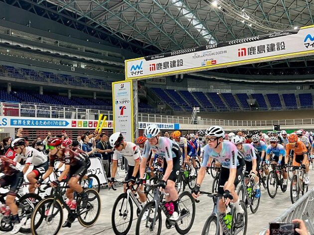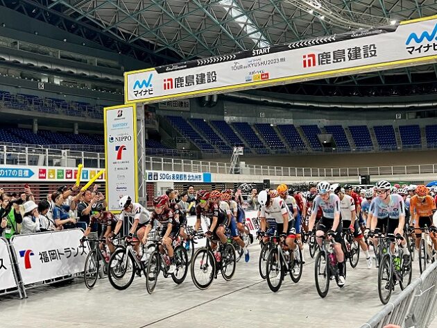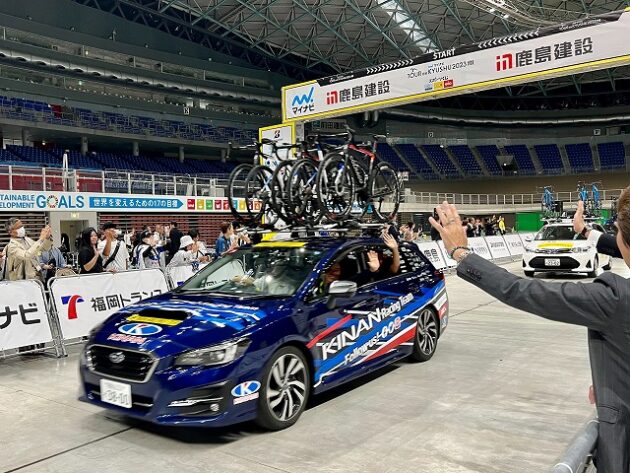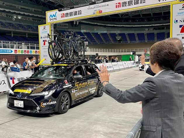 第1回「 マイナビ ツール・ド・九州 2023 」福岡ステージ スタート( 北九州メディアドーム ) ※超党派「 #自転車活用推進議員連盟 」を代表して出席