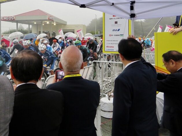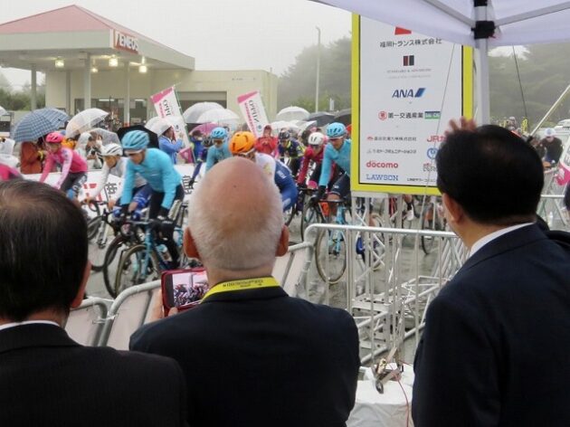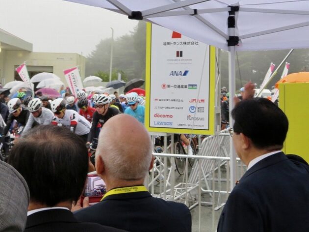 第1回「 マイナビ ツール・ド・九州 2023 」熊本阿蘇ステージ スタート( 南小国町・瀬の本レストハウス前 ) ※超党派「 自転車活用推進議員連盟 」を代表して出席