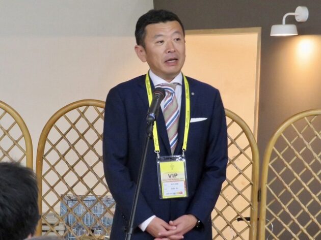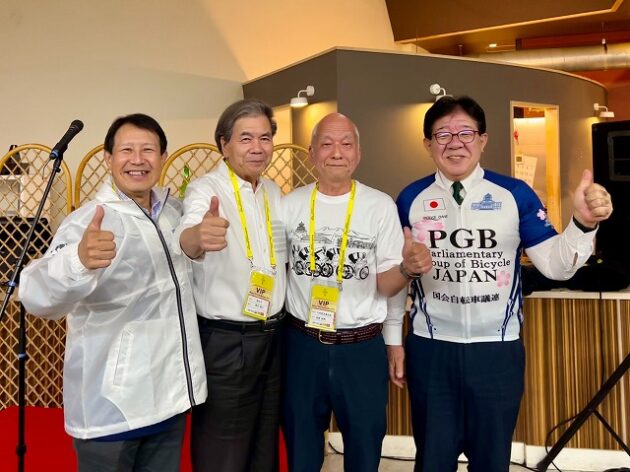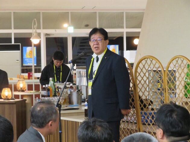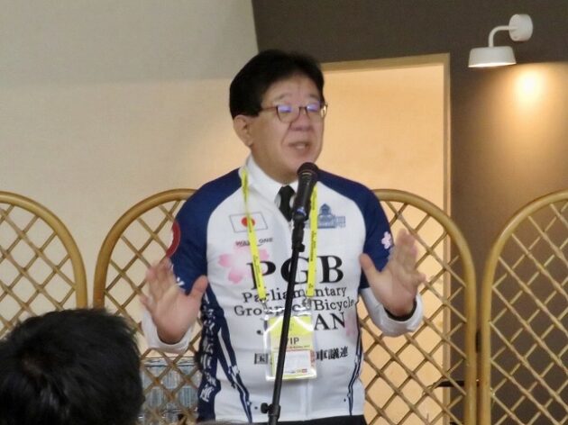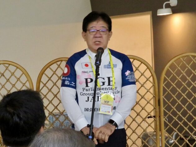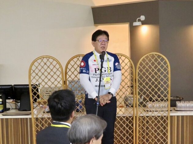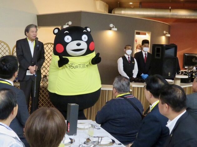 第1回「 マイナビ ツール・ド・九州 2023 」熊本阿蘇ステージ 懇親パーティー( 南小国町・瀬の本レストハウス ) ※超党派「 自転車活用推進議員連盟 」を代表して出席