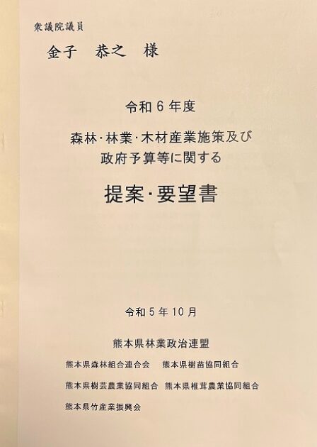 熊本県林業政治連盟「 要望 並びに 机上名札贈呈 」( 自民党本部・組織運動本部長室 )