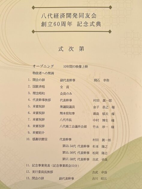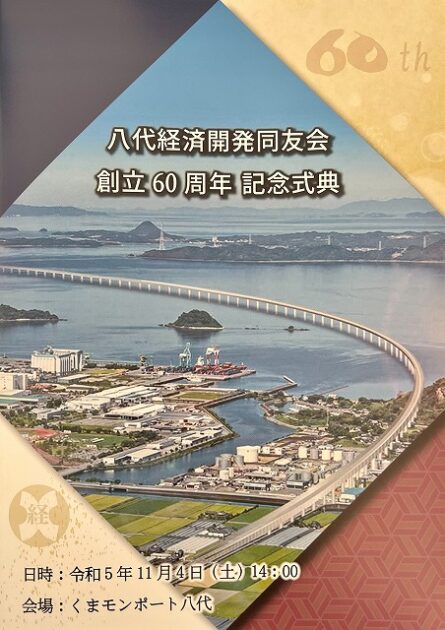 八代経済開発同友会「 創立60周年 記念式典 」→ 16時〜八代経済開発同友会「 創立60周年 記念祝賀会 」( 八代市・くまモンポート八代内 )
