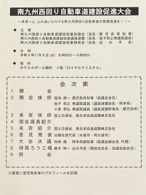 南九州西回り自動車道建設促進大会( ルポール麹町 ) ※南九州西回り自動車道建設促進議員連盟 会長として 出席