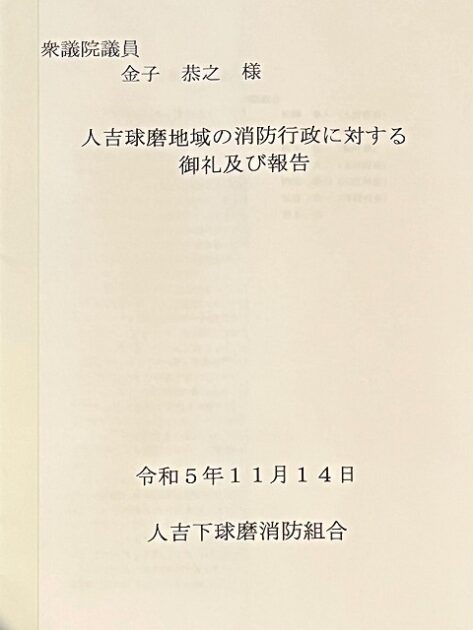 人吉下球磨消防組合「 人吉球磨地域の消防行政に対する御礼 及び 報告 」( 総務省内 )