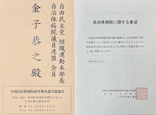 全国自治体病院経営都市議会協議会 要望来室( 自民党本部・組織運動本部長室 )