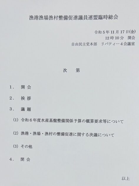 自民党 漁港漁場漁村整備促進議員連盟「 臨時総会 」 ※副会長