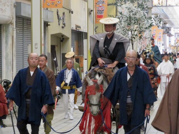 九州三大祭り・ユネスコ無形文化遺産『 八代妙見祭〔 神幸行事 〕』③神幸行列 出発( 八代市・塩屋八幡宮→ 八代ハーモニーホール→ 八代駅→ 宮地 妙見宮 ) ※笠鉾「 本蝶蕪 」にて 参加